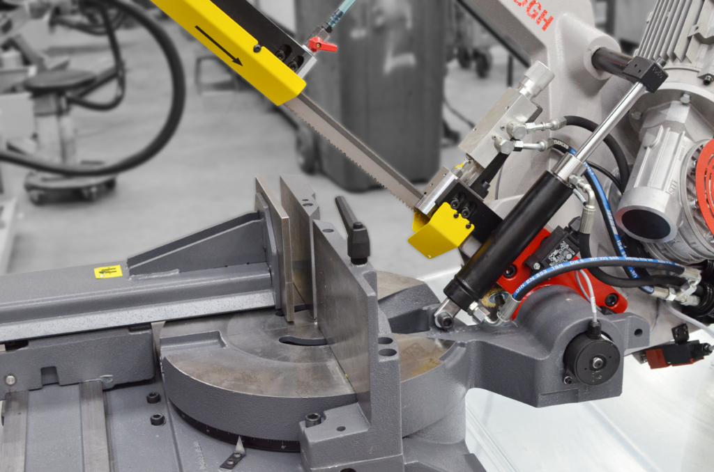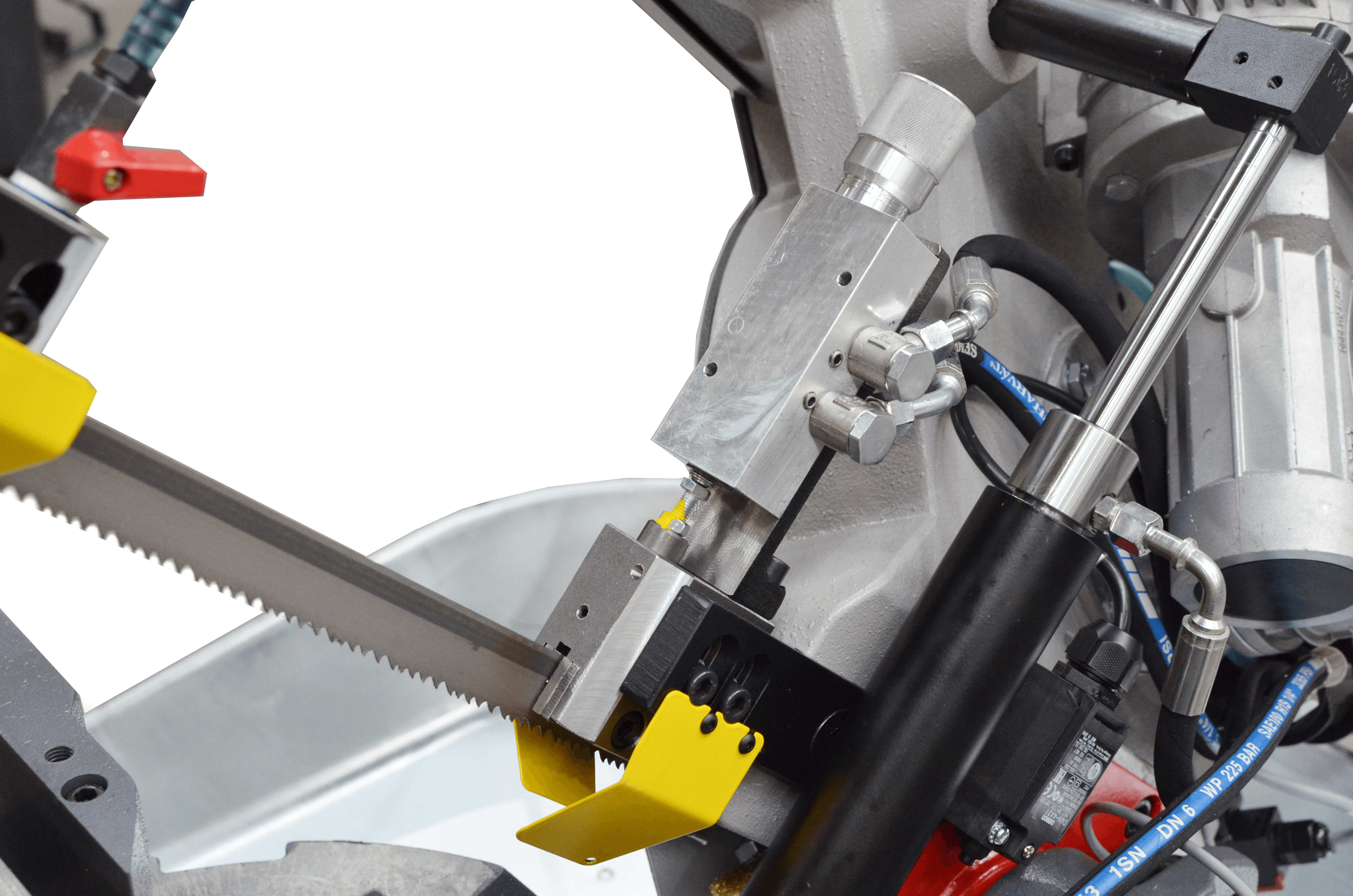 W porównaniu z konkurencją piła ta oferuje precyzję cięcia, gwarantowaną przez profesjonalne prowadzenie taśmy piły w łożyskach oraz w twardych prowadnicach węglikowych. Węglik jest kruchy ale w przecinarkach taśmowych wykorzystuje się jego drugą właściwość a mianowicie jest odporny na ścieranie co zapewnia jego długowieczną pracę w prowadzeniu brzeszczotu piły taśmowej. Dodatkowo maszyna wyposażona jest w System ADFR (z ang. Automatic Down-Feed Regulation) to automatyczny system regulacji prędkości opuszczania ramienia przecinarki taśmowej.