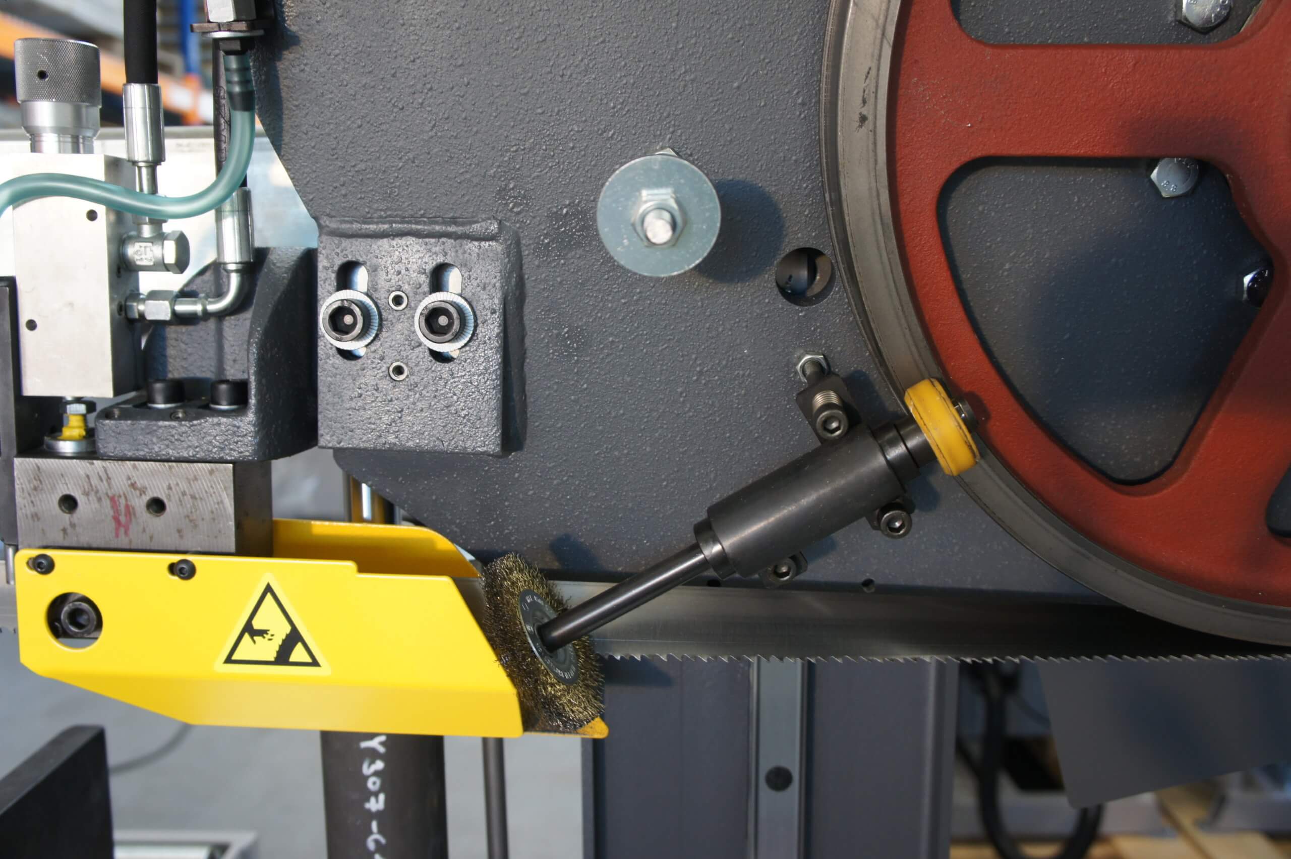 Pilarka INDIVIDUAL 520.360GANC jest wyposażona w szczotkę czyszczącą piłę taśmowa z wiórów. Gwarantuje to dłuższą żywotność taśmy i higienę cięcia na przecinarce.