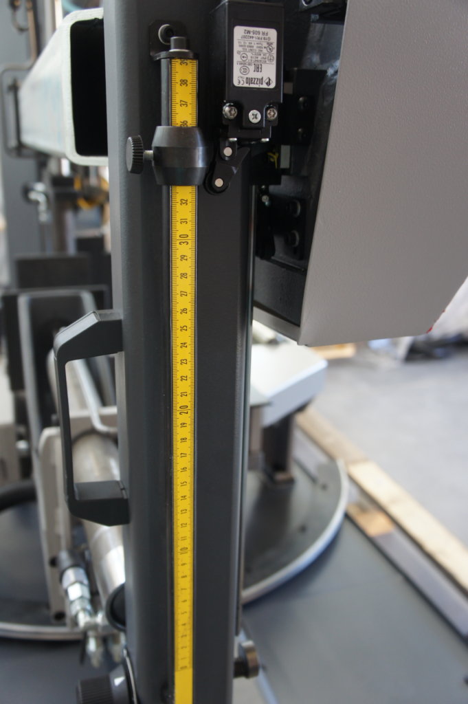 Podnoszenie ramienia i opuszczanie ramienia jest sterowane hydraulicznie bezpośrednio z pulpitu. Maszyna jest wyposażona w agregat hydrauliczny wspomagający pracę całego urządzenia. Prędkość opadania ramienia jest płynna i regulowana przez zawór na pulpicie. Po przełączeniu maszyny w tryb półautomatyczny, wszystkie funkcje są sterowane za pomocą klawiatury membranowej.