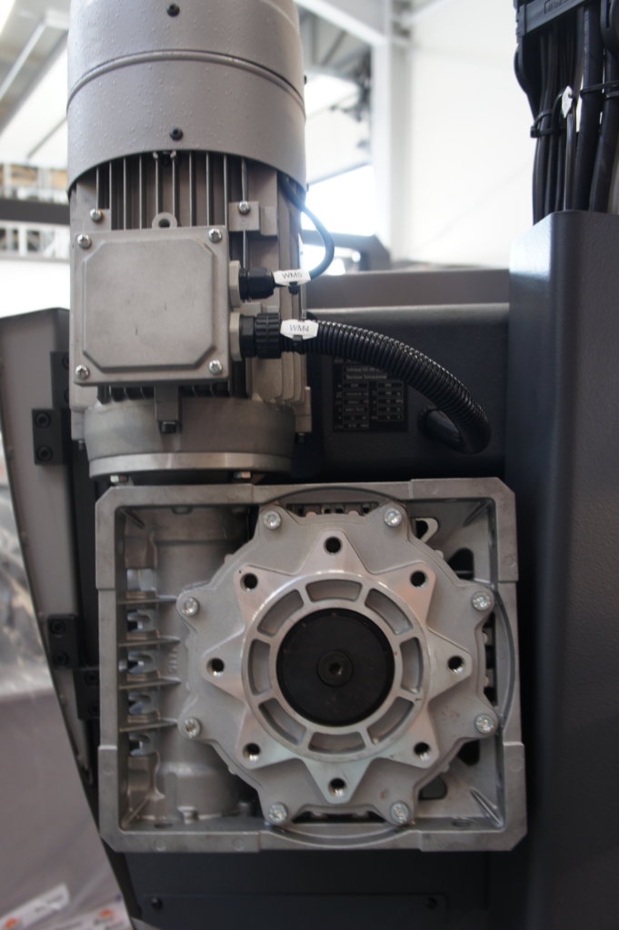 Taśmę napędza silnik przemysłowy sterowany przez falownik w który maszyna jest wyposażona. Dzięki temu prędkość taśmy może być regulowana w sposób płynny od 20-120m/min idealnie dopasowana do ciętego materiału. Napęd wspomagany jest przekładnią ślimakową umieszczoną w kąpieli olejowej.