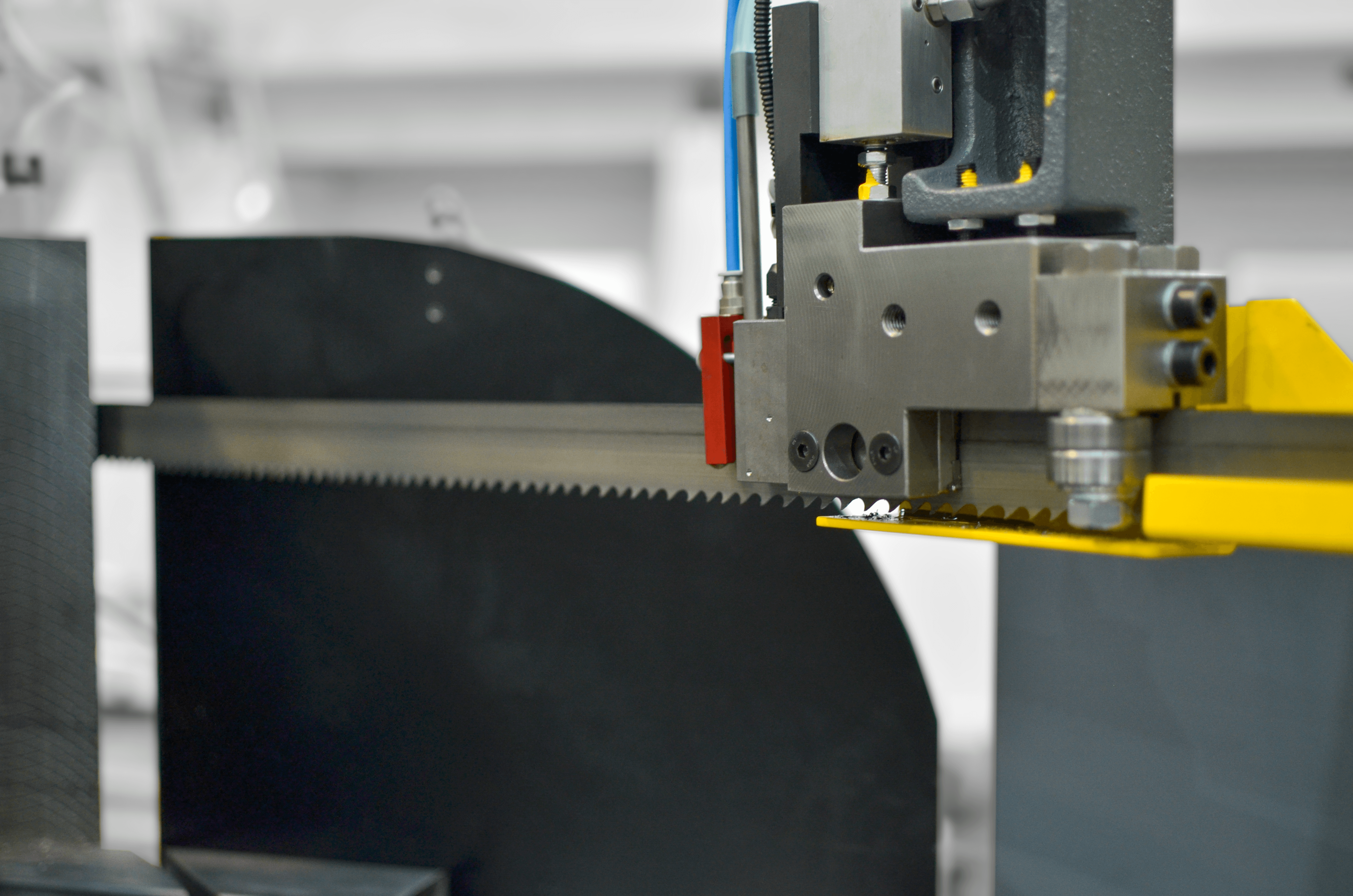 - cięcie materiałów wymagających dobrej powierzchni cięcia — dzięki prowadnicom, regulacji prędkości taśmy i hydraulicznej kontroli posuwu można zoptymalizować parametry dla różnych gatunków stali.