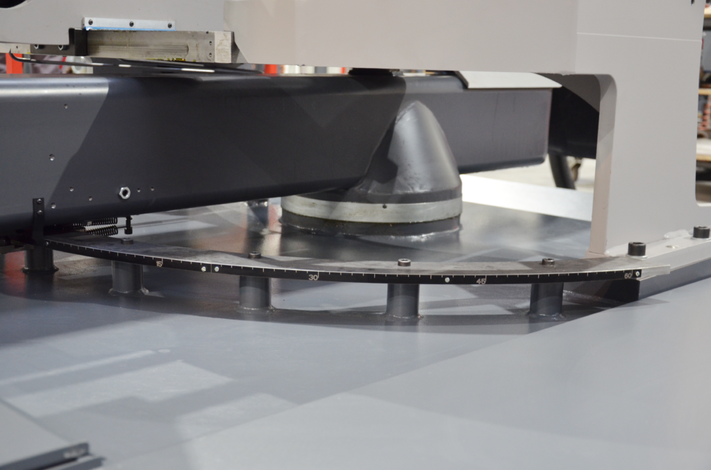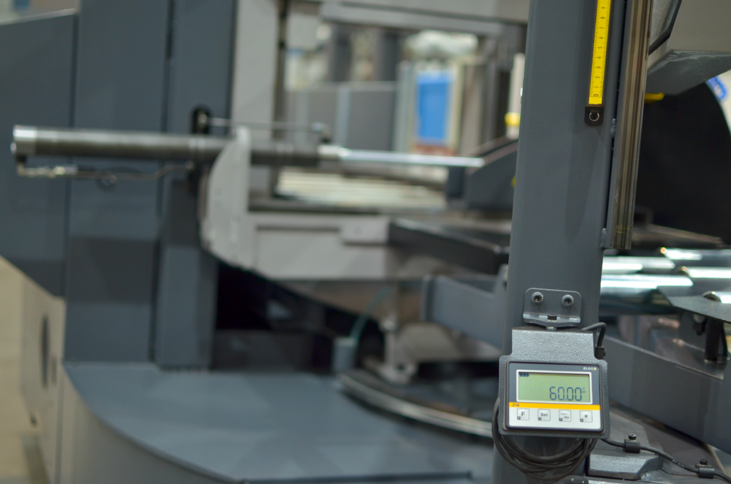 Maszynę można też wyposażyć dodatkowo w elektroniczny odczyt kąta ramienia co przyspiesza pracę i zwiększa precyzję (zdjęcie po lewej)