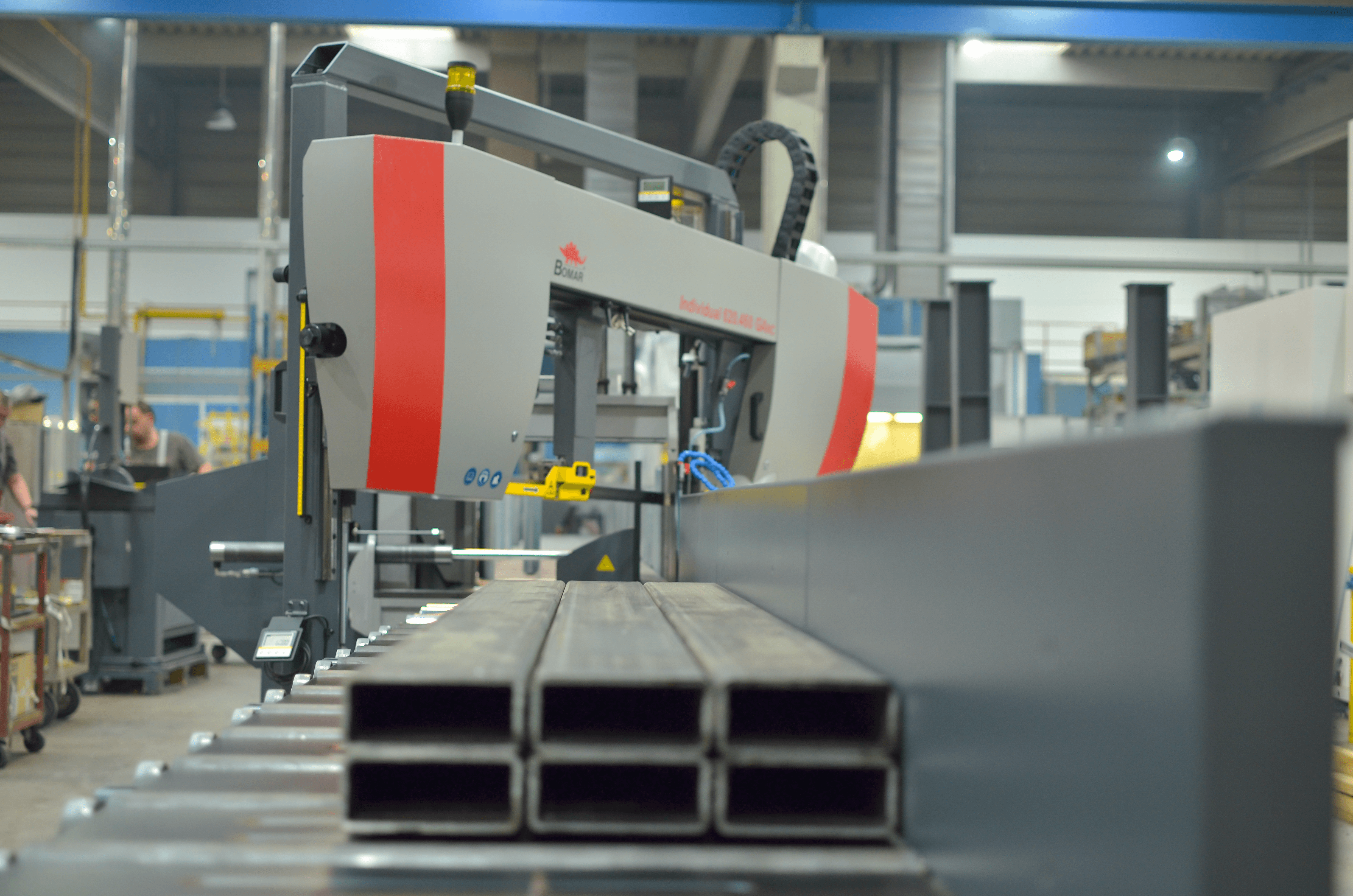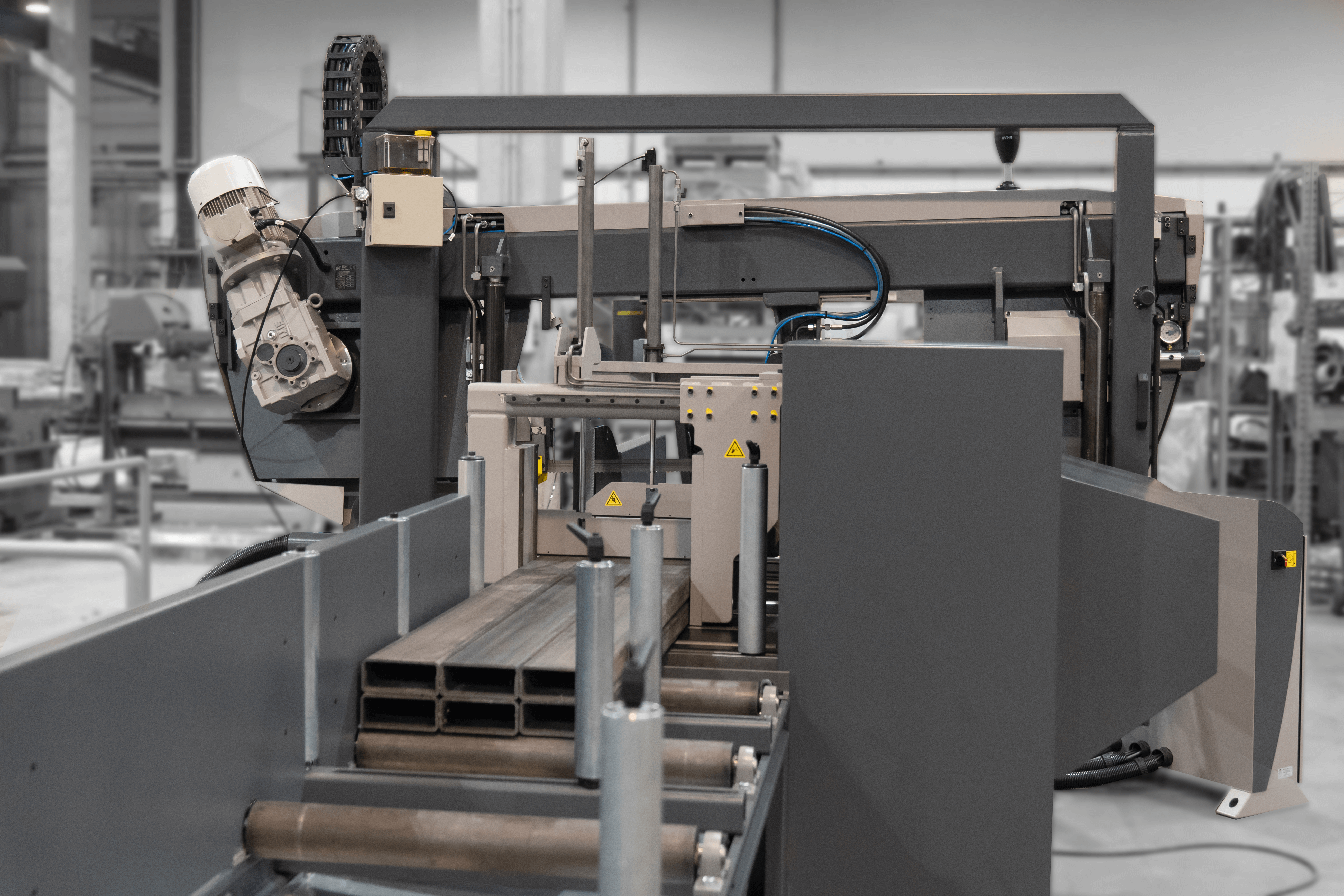 - masowe, seryjne cięcie wałków, prętów, rur — dzięki automatyzacji cyklu, można programować kolejne długości i liczby ciętych elementów, co zmniejsza czas obsługi operatora
