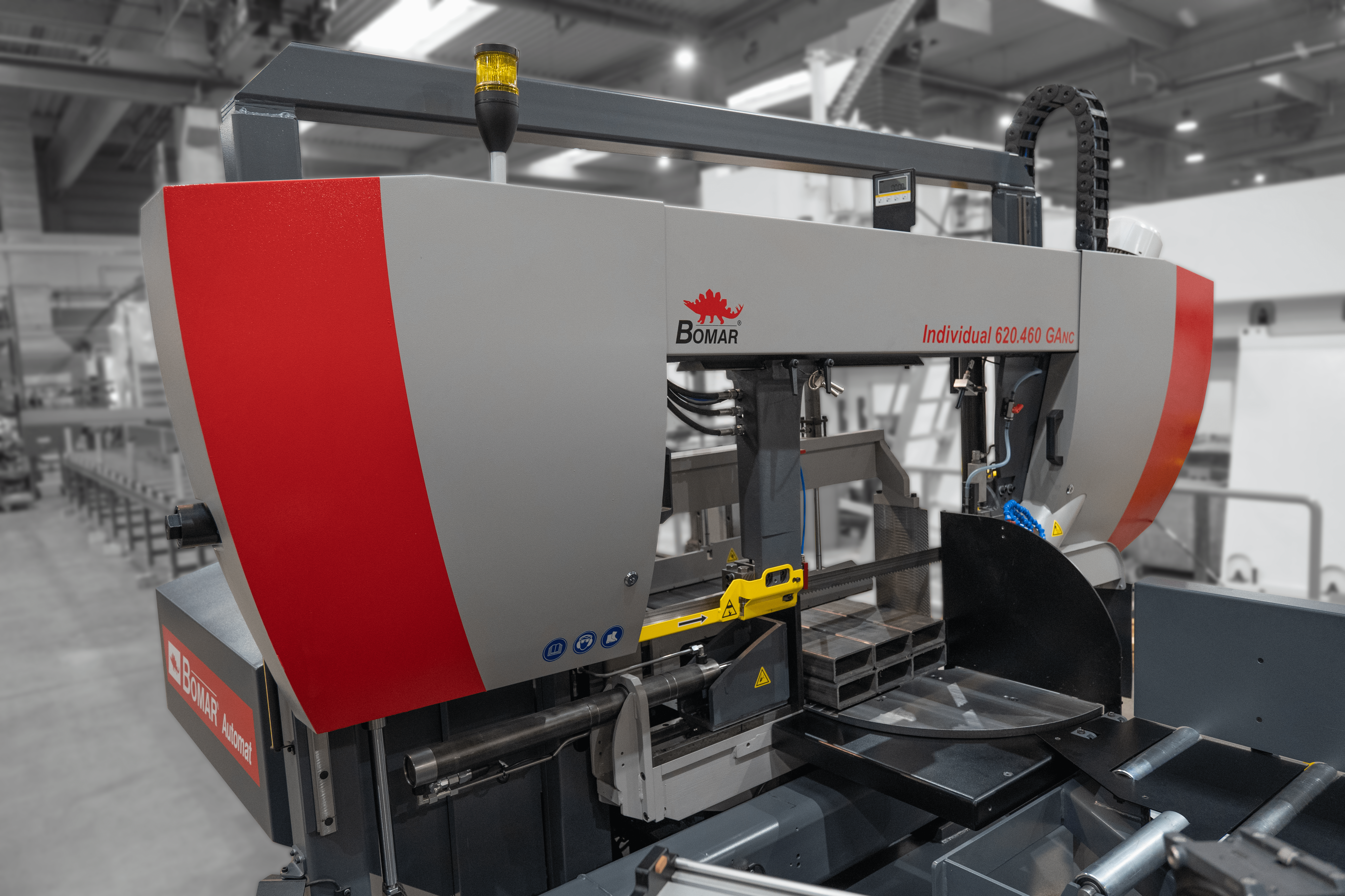Automatyczna piła model Individual 520.360GANC to automatyczna przecinarka taśmowa (piła taśmowa) o konstrukcji dwukolumnowej, przeznaczona głównie seryjnych cięć materiałów okrągłych, walców, prętów, rur czy profili stalowych pod kątem i w linii prostej, których maksymalna średnica nie przekracza 360 mm.