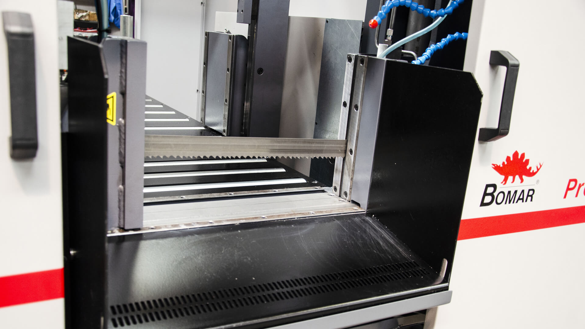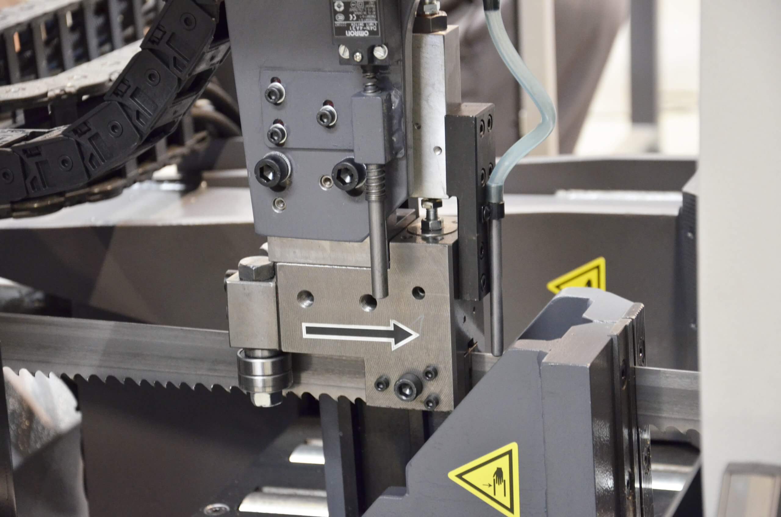 Maszyna łączy cechy dokładności, automatyzacji procesu cięcia oraz elastyczności ustawień prędkości taśmy i parametrów posuwu, co pozwala zoptymalizować zarówno prędkość produkcji, jak i żywotność narzędzia.