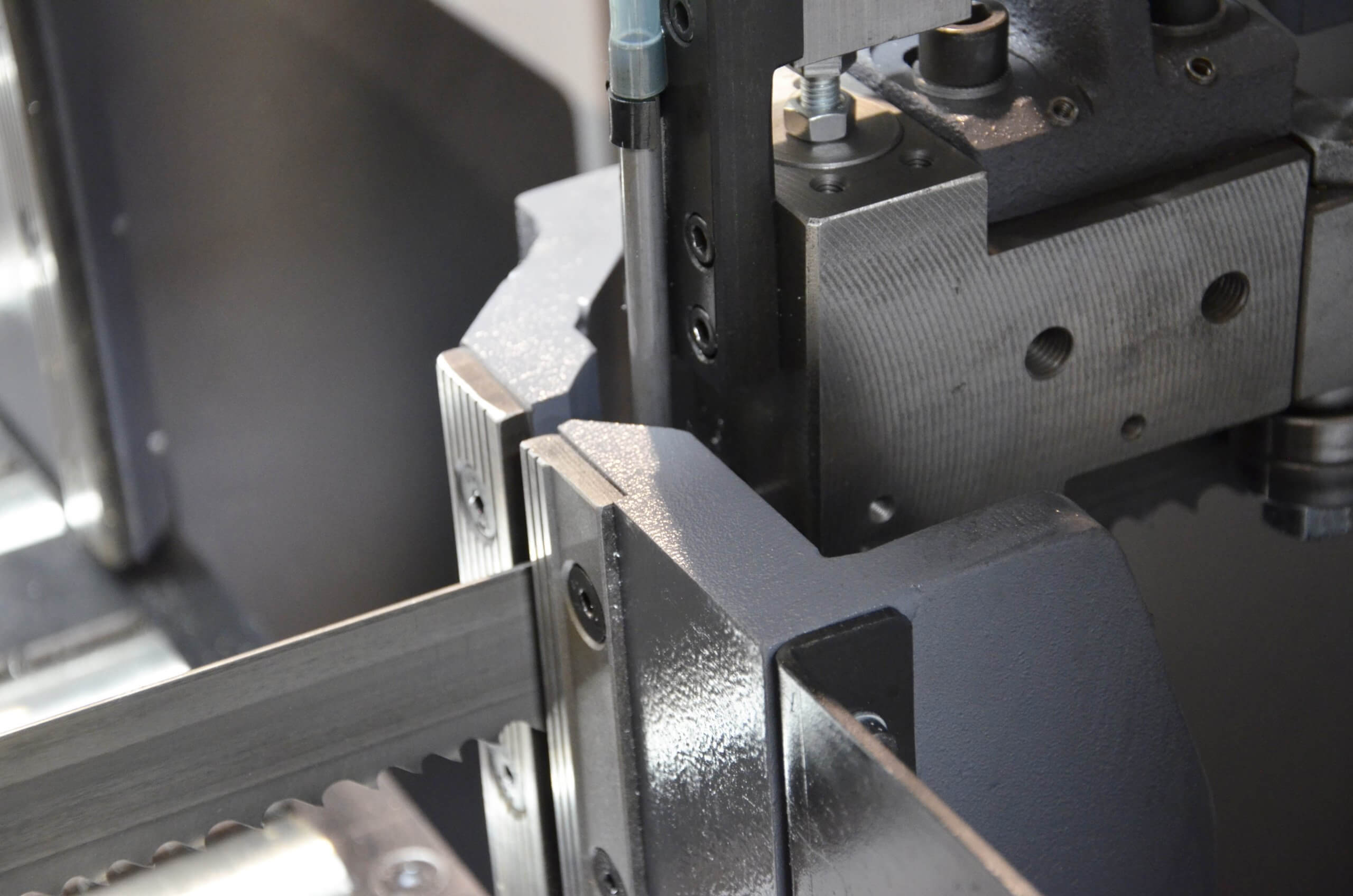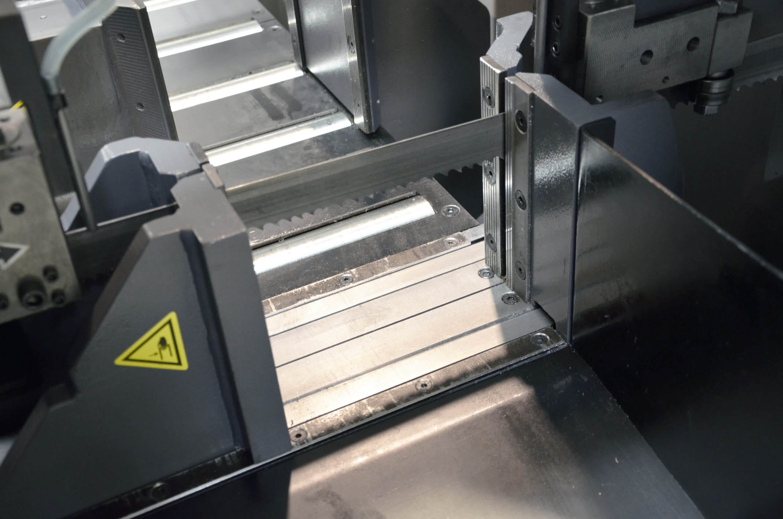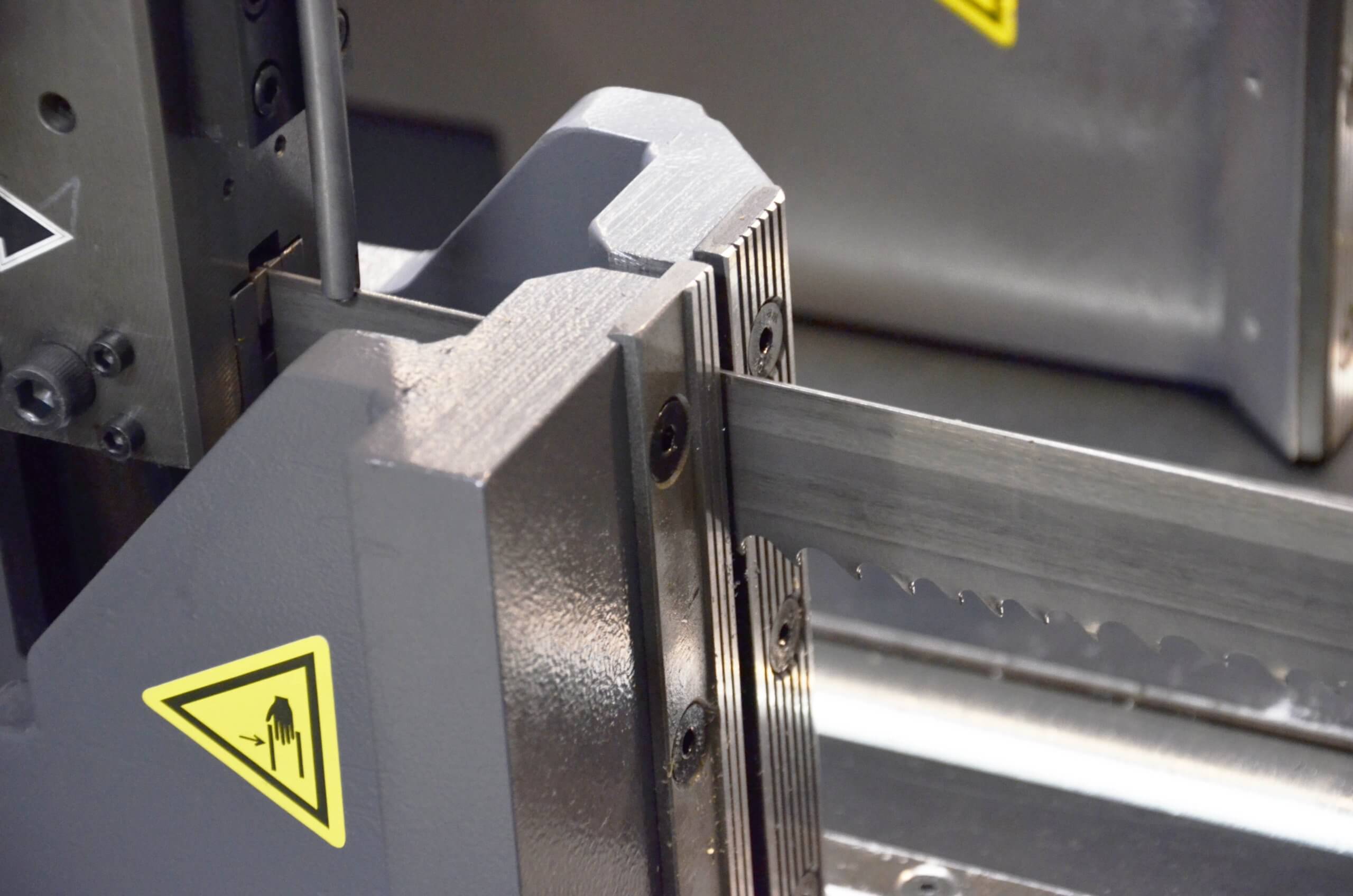 - cięcie materiałów wymagających dobrej powierzchni cięcia — dzięki prowadnicom, regulacji prędkości taśmy i hydraulicznej kontroli posuwu można zoptymalizować parametry dla różnych gatunków stali.