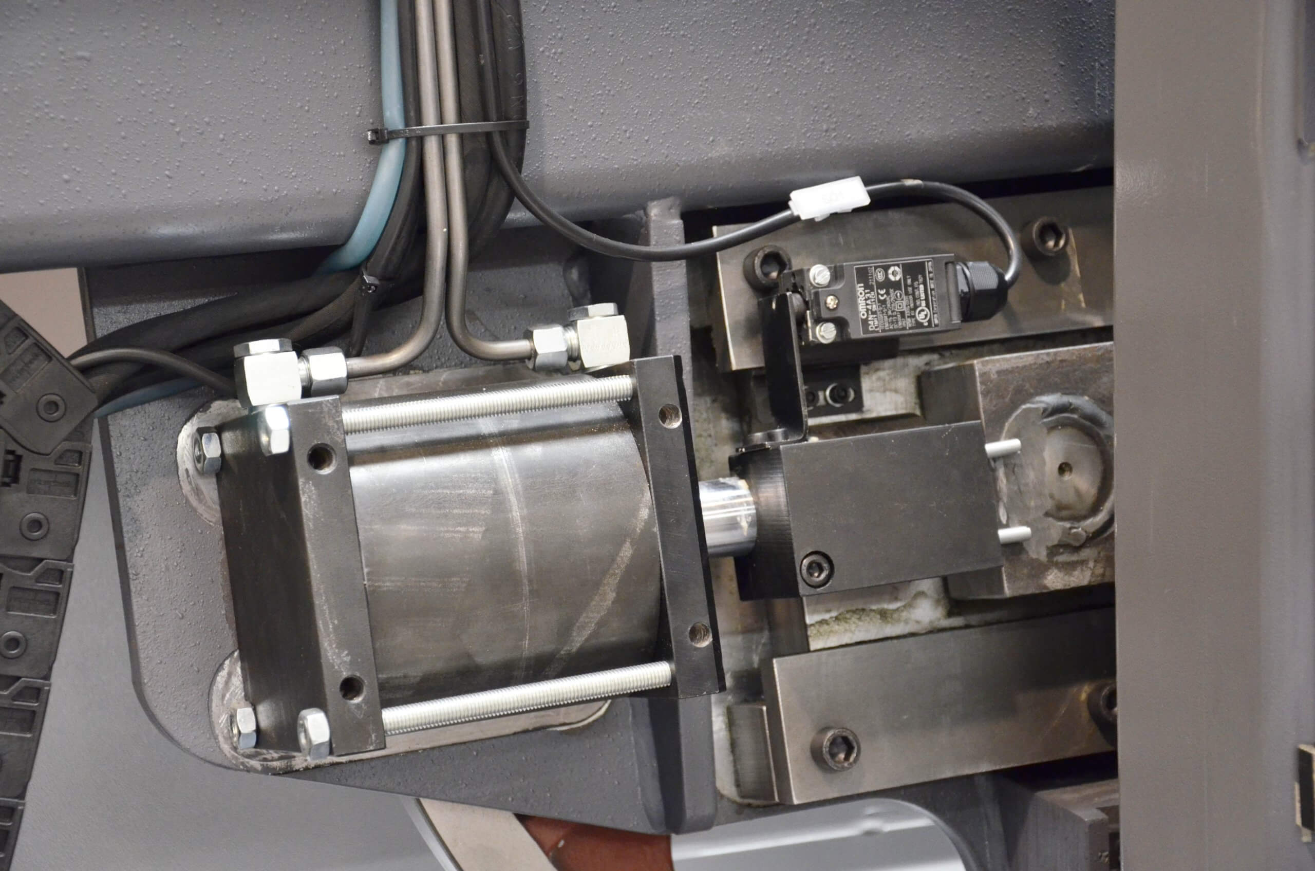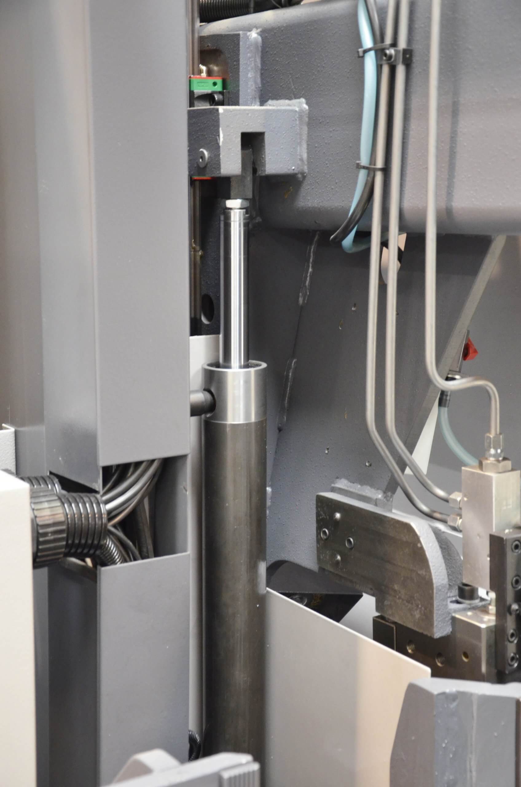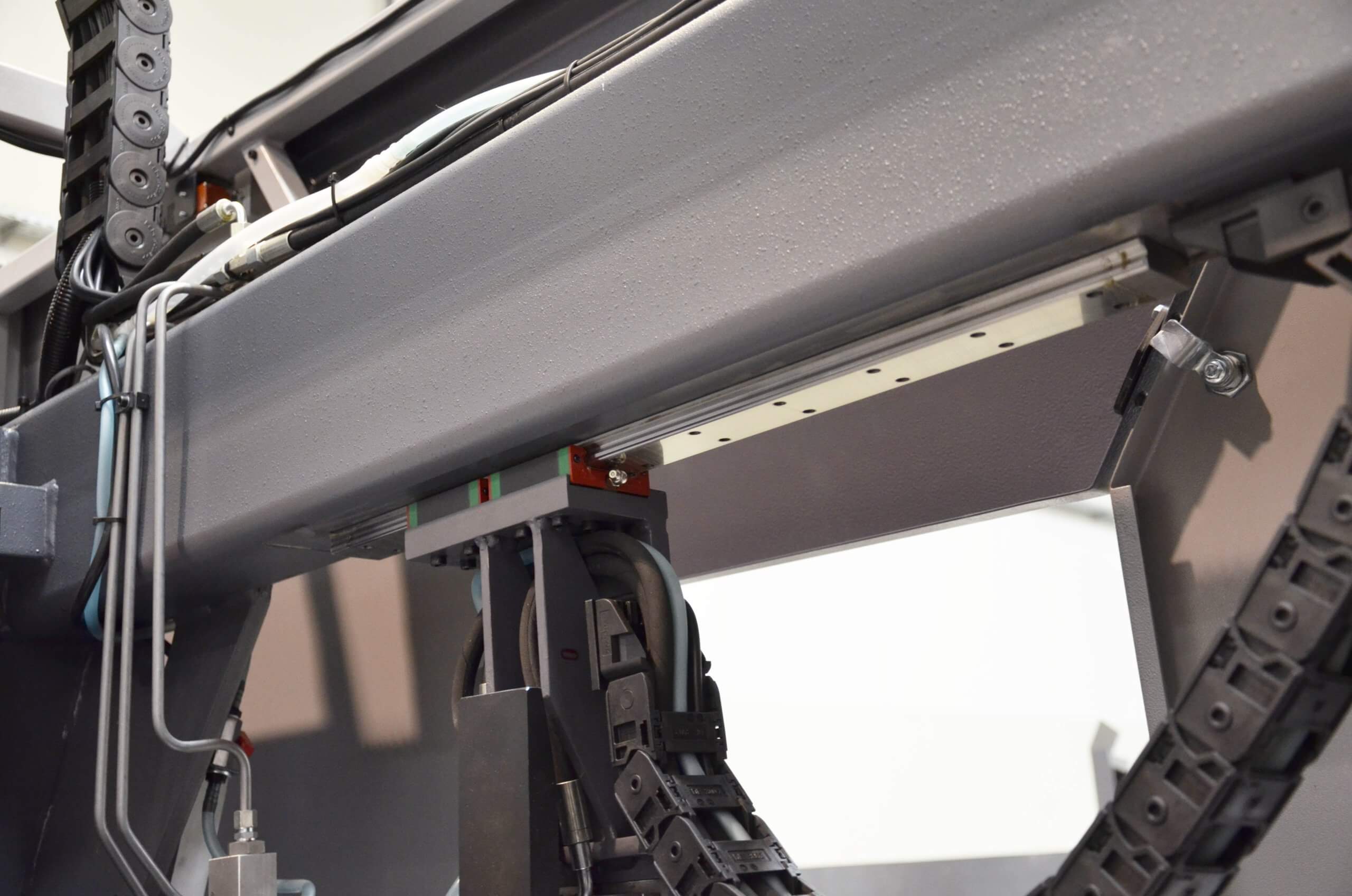 Podnoszenie ramienia i opuszczanie ramienia jest sterowane hydraulicznie bezpośrednio z pulpitu. Maszyna jest wyposażona w agregat hydrauliczny wspomagający pracę całego urządzenia. Prędkość opadania ramienia jest płynna i regulowana przez zawór na pulpicie. Po przełączeniu maszyny w tryb półautomatyczny, wszystkie funkcje są sterowane za pomocą klawiatury membranowej. Wszystkie elementy sterujące znajdują się na regulowanym panelu sterowania.