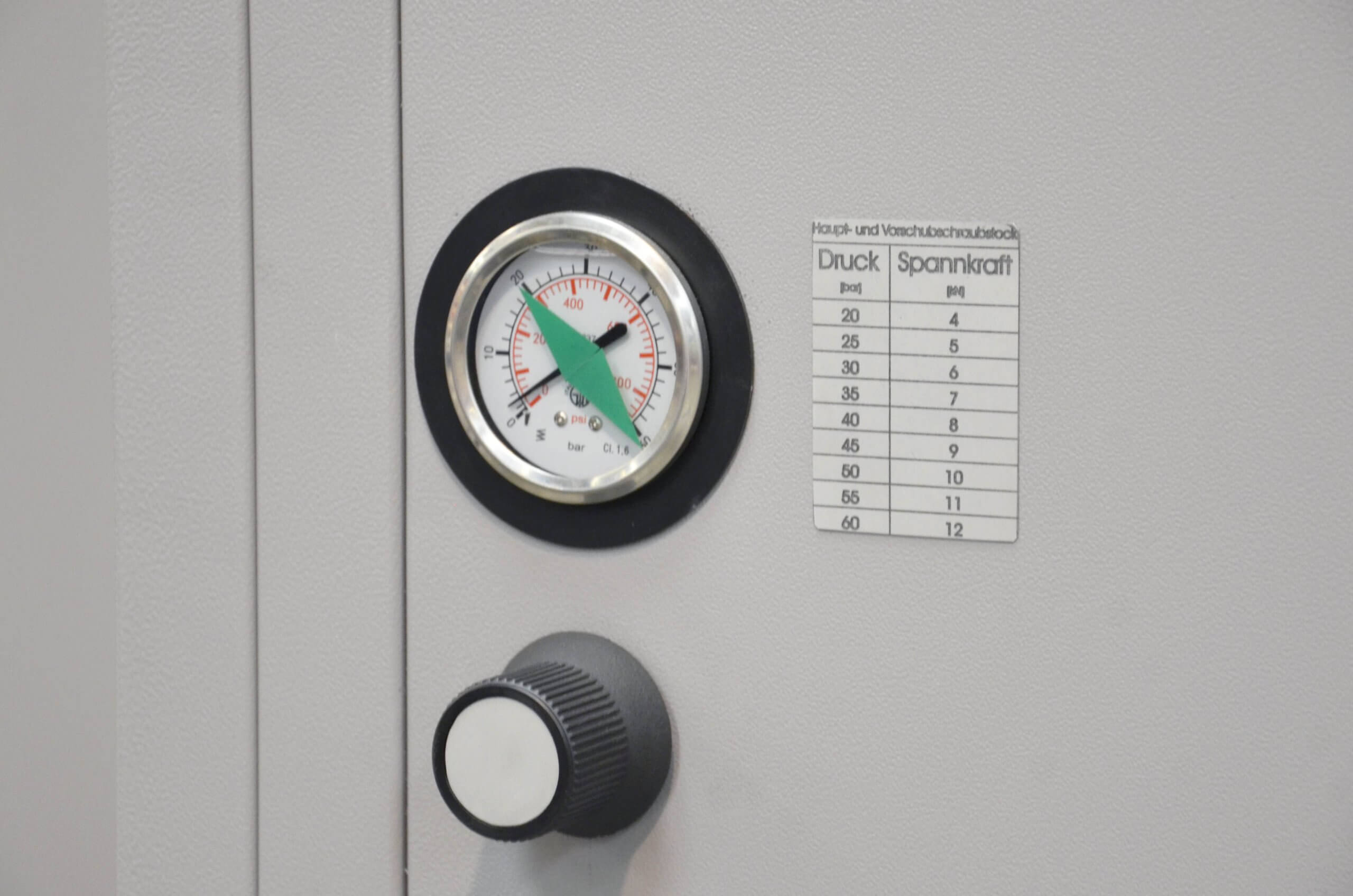 Regulacja ciśnienia w imadłach przecinarek taśmowych umożliwia precyzyjne dostosowanie siły docisku i przesuwu materiału w zależności od jego rodzaju, kształtu i wymiarów. System ten stosowany jest zarówno w imadłach zaciskających (mocujących materiał do cięcia), jak i podających (przesuwających materiał w cyklu automatycznym).