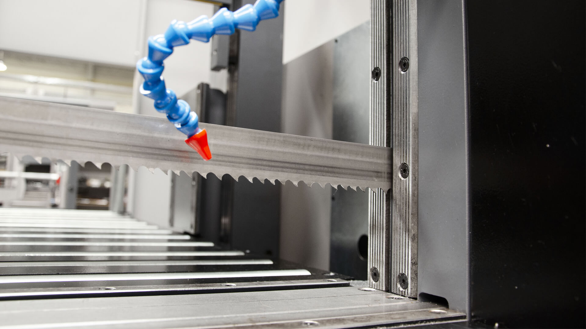 Dodatkowy układ chłodzenia doskonale sprawdzi się przy cięciu materiałów o dużej średnicy, w przypadku, kiedy rozstaw kostek prowadzących jest za szeroki. Ustawienie rozprowadzania płynu chłodzącego jest niezwykle proste. Dodatkowym plusem jest możliwość regulacji. Piła taśmowa jest nie tylko smarowana, ale również chłodzona.