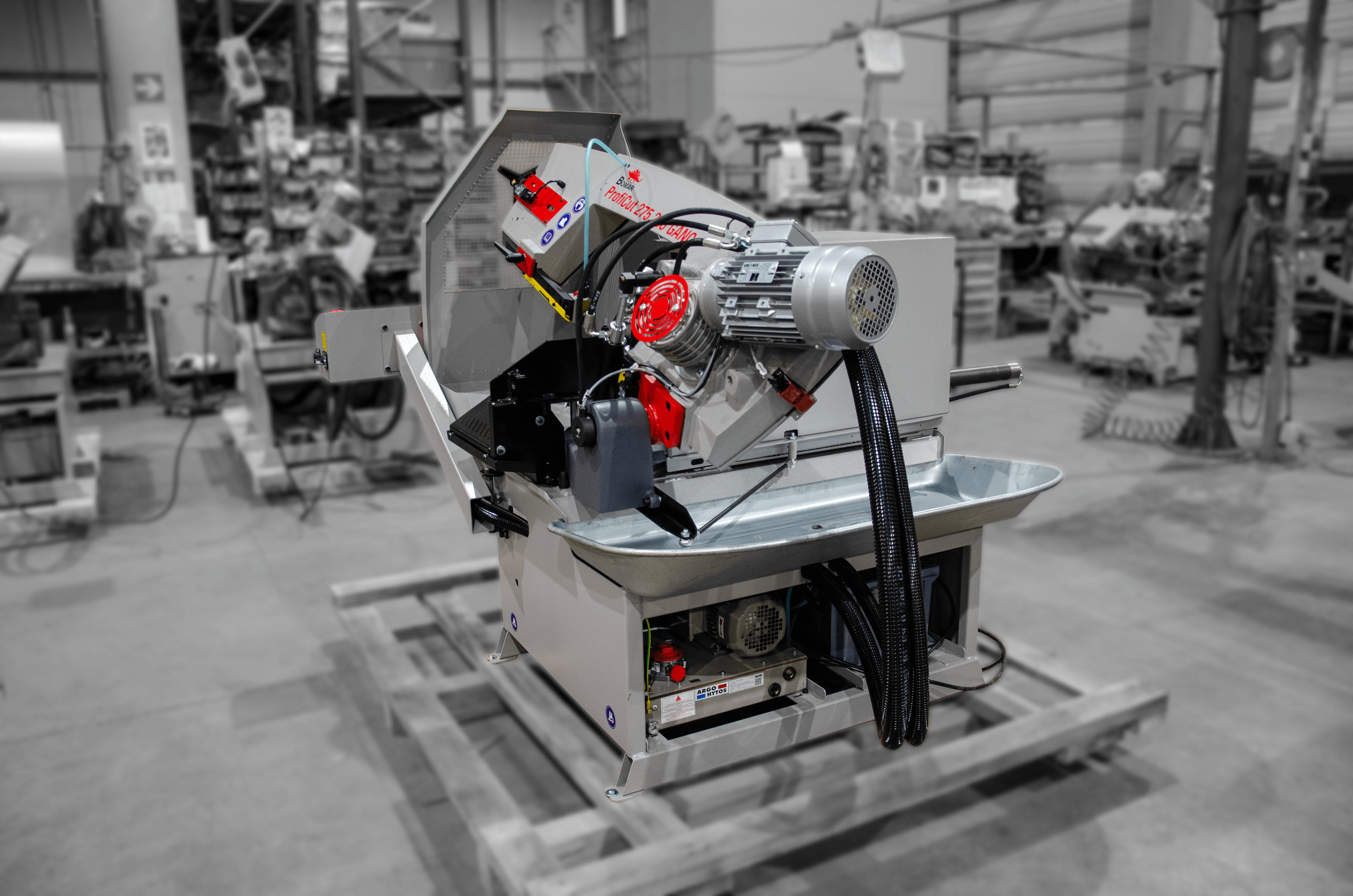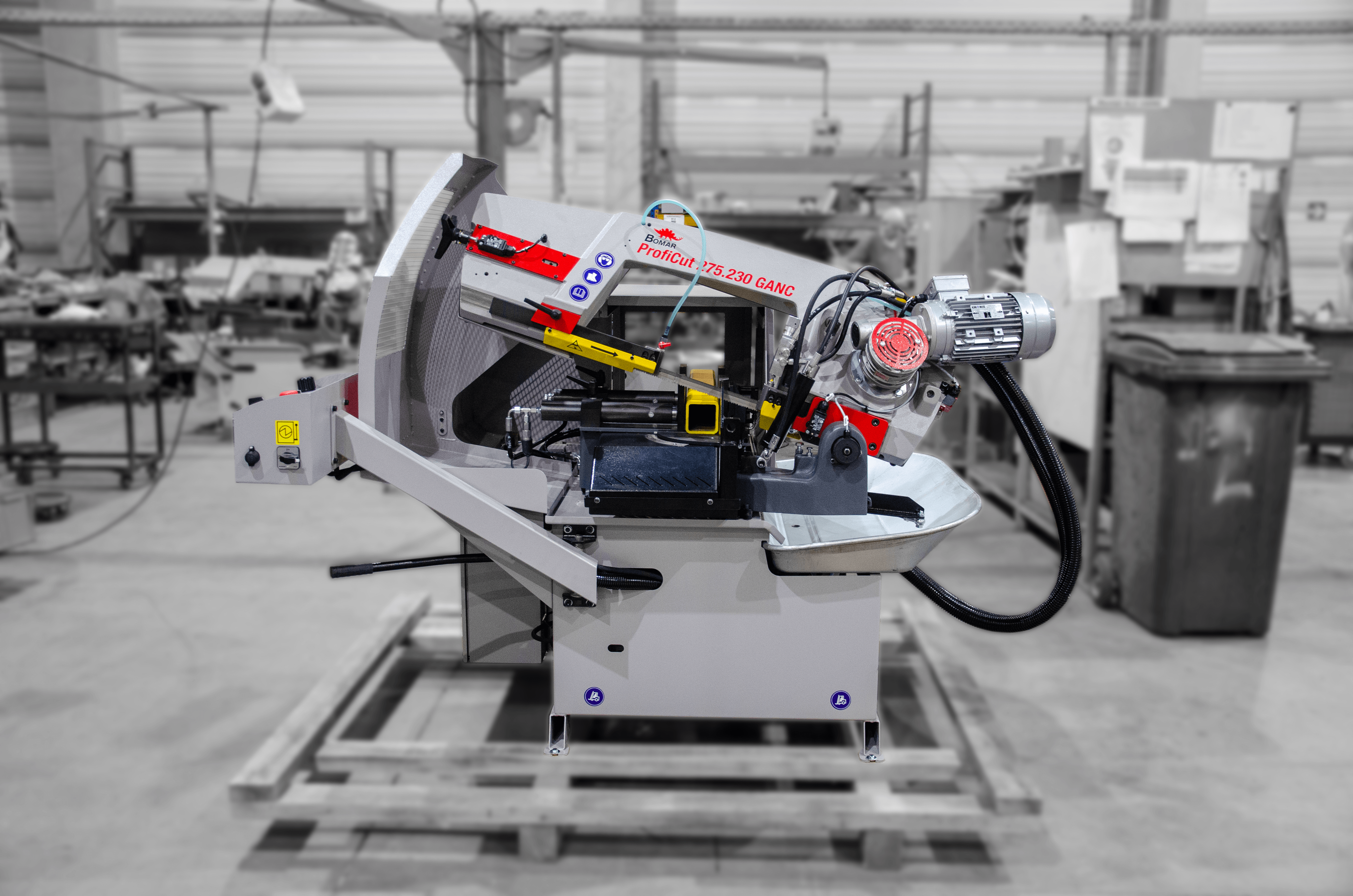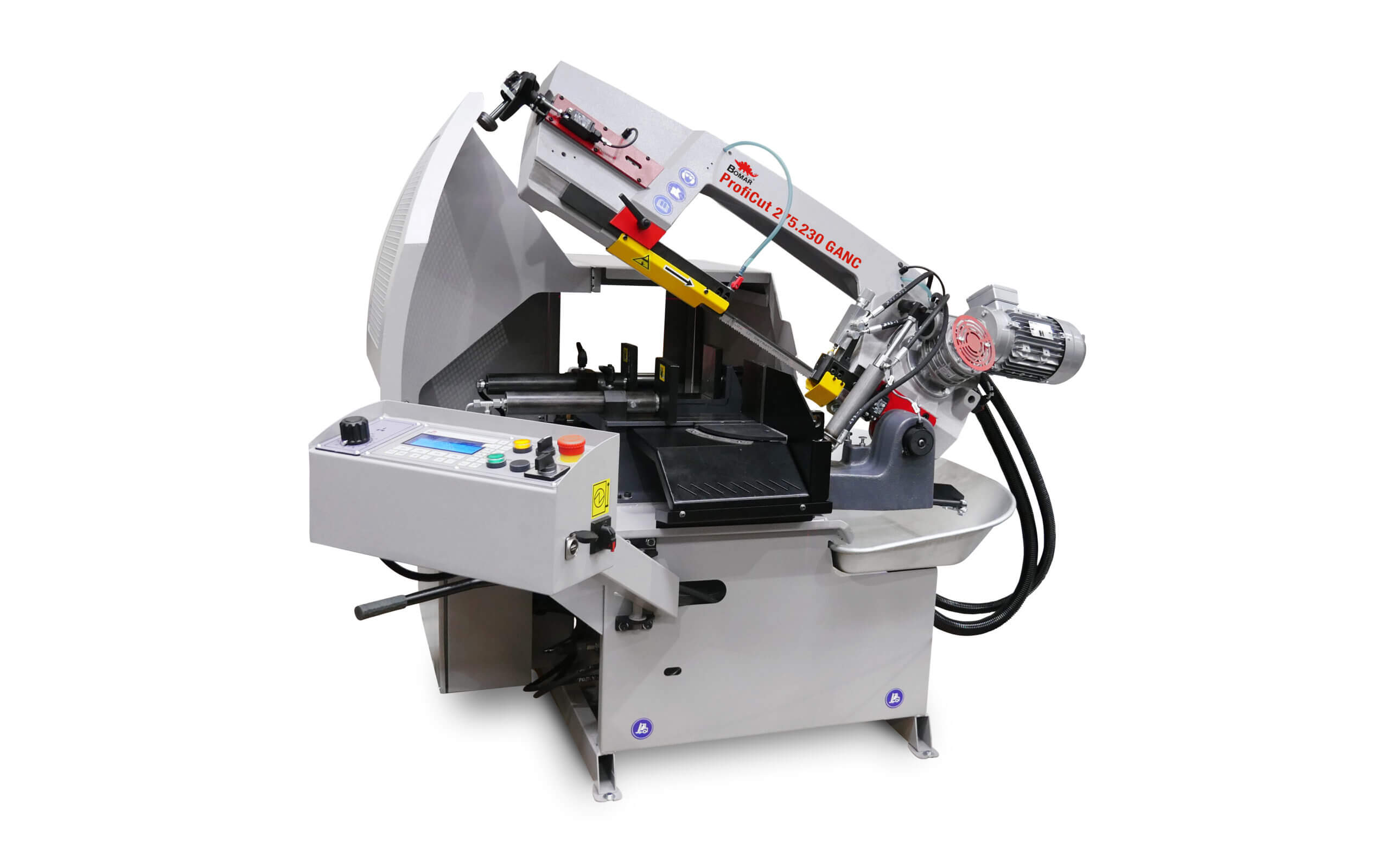 Automatyczna piła taśmowa ze sterowaniem NC. Największą zaletą tej maszyny jest możliwość zaprogramowania różnej ilości sztuk obrabianego materiału, o różnych długościach, bez dalszej kontroli maszyny. Maszyna ta szczególnie nadaje się do cięcia profili i materiałów pełnych o mniejszych przekrojach z dokładnością jednego posuwu 0,2 mm. Proficut 275.230GANC to wydajna piła taśmowa zaprojektowana z myślą o pracach warsztatowych oraz produkcyjnych, wymagających precyzyjnego cięcia metalu. Maszyna łączy solidną konstrukcję z możliwością automatyzacji procesu cięcia, co sprawia, że nadaje się do zadań o wysokim stopniu powtarzalności.