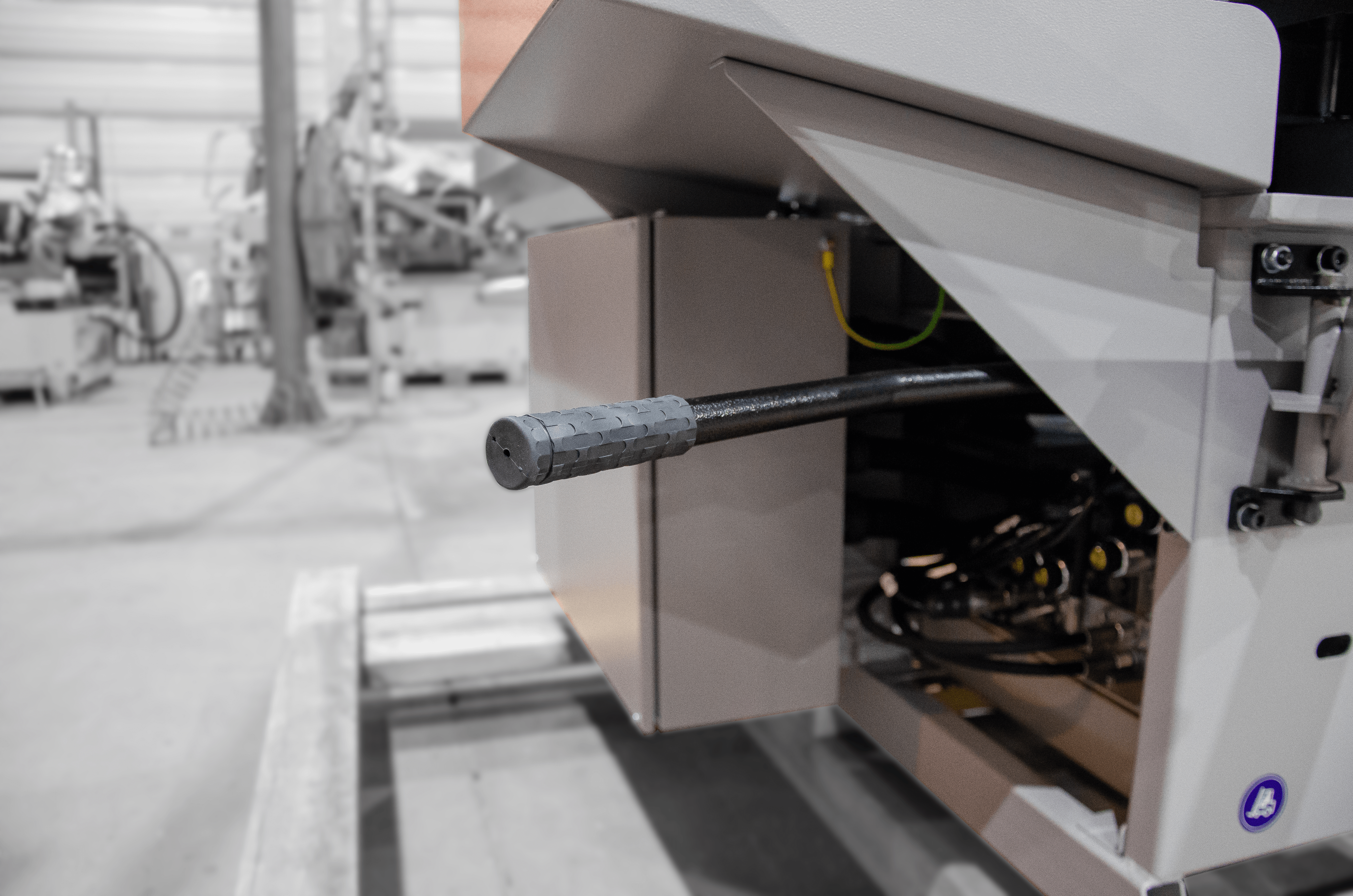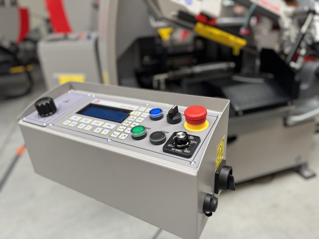 Panel sterowania znajduje się na ruchomym uchwycie co ułatwia pracę operatorowi w dogodnym dla niego miejscu podczas cięcia. Na podświetlanym czterowierszowym wyświetlaczu pokazywana jest prosta kontrola dialogowa z wiadomościami tekstowymi.
