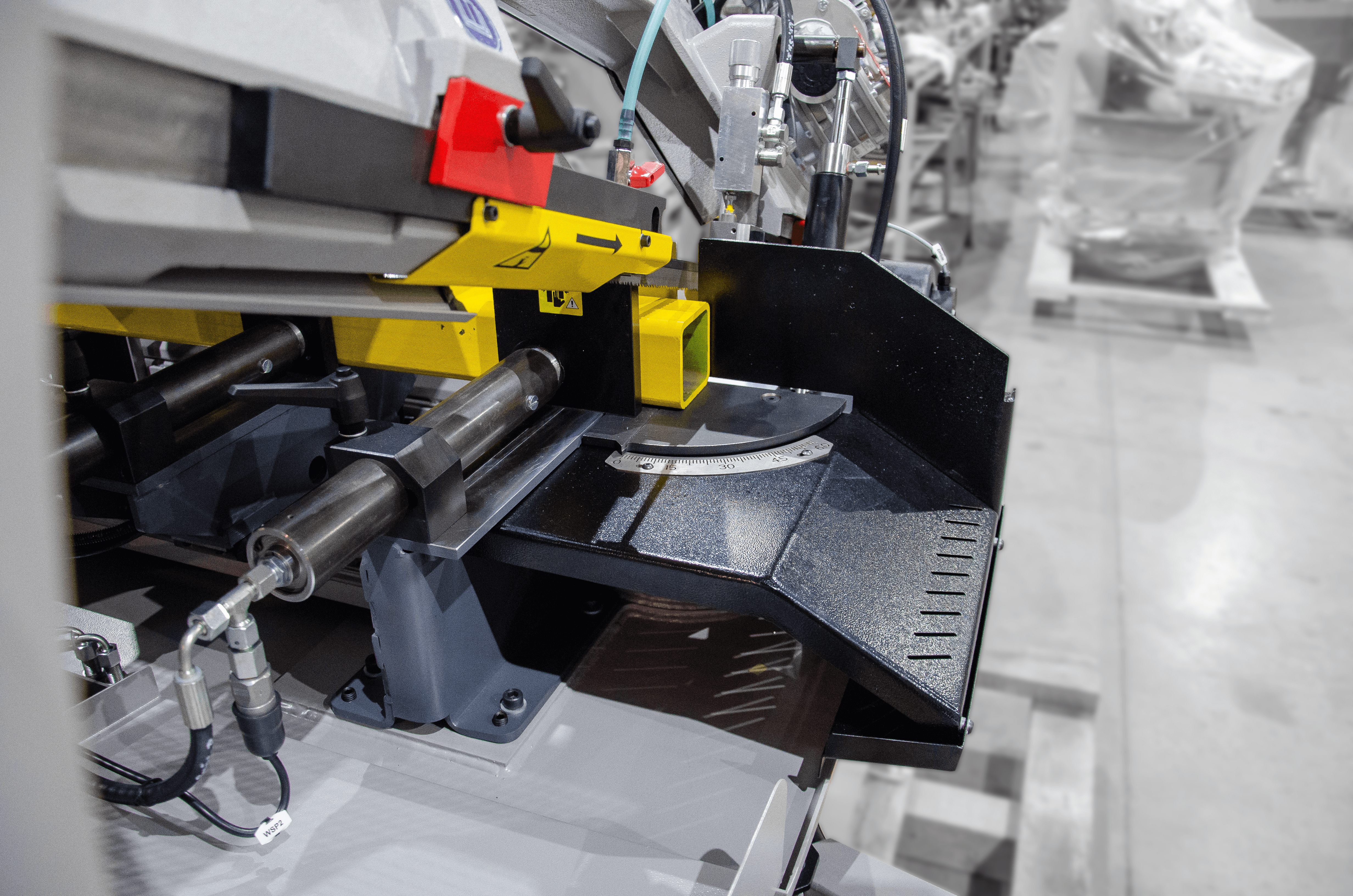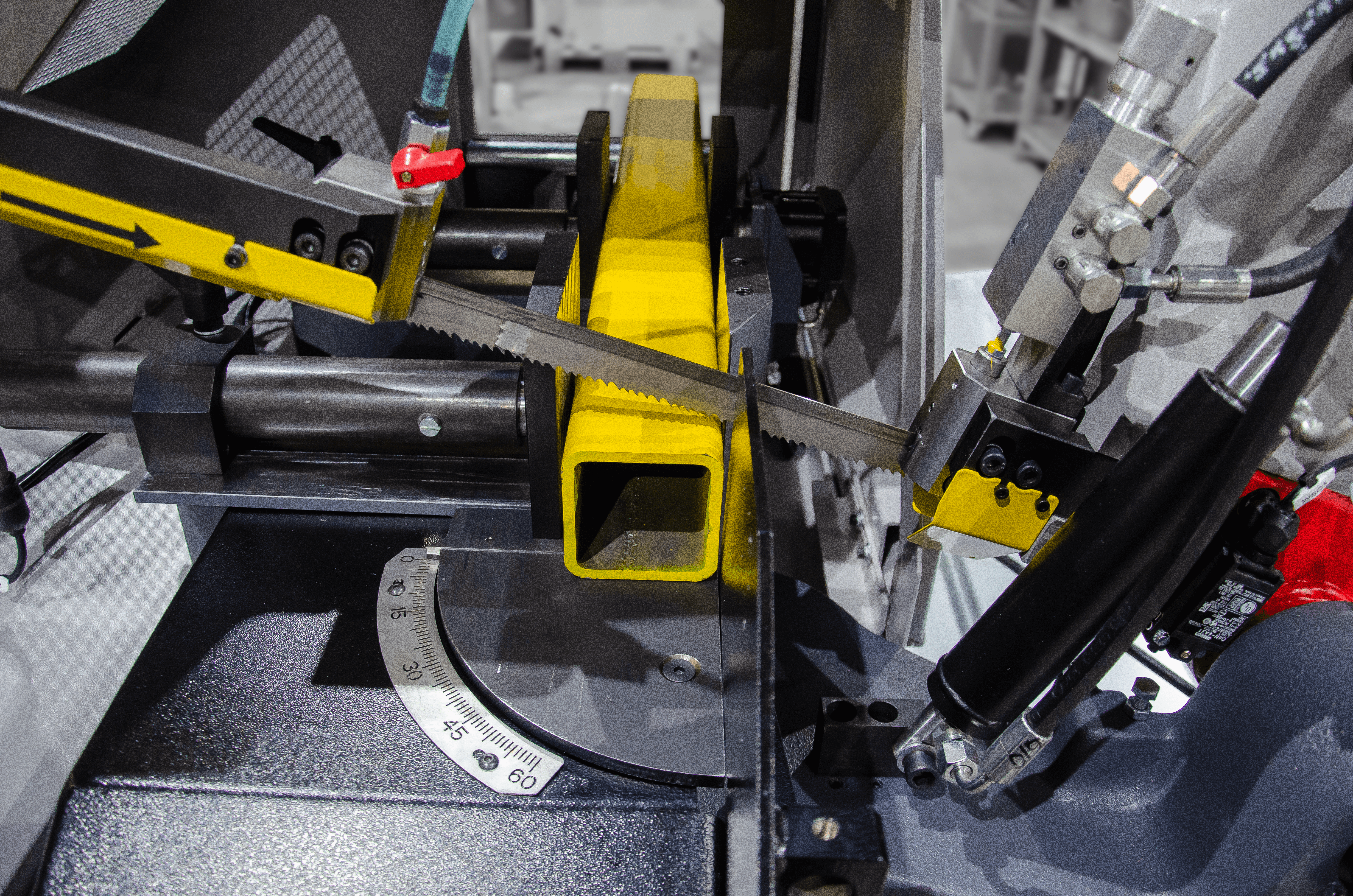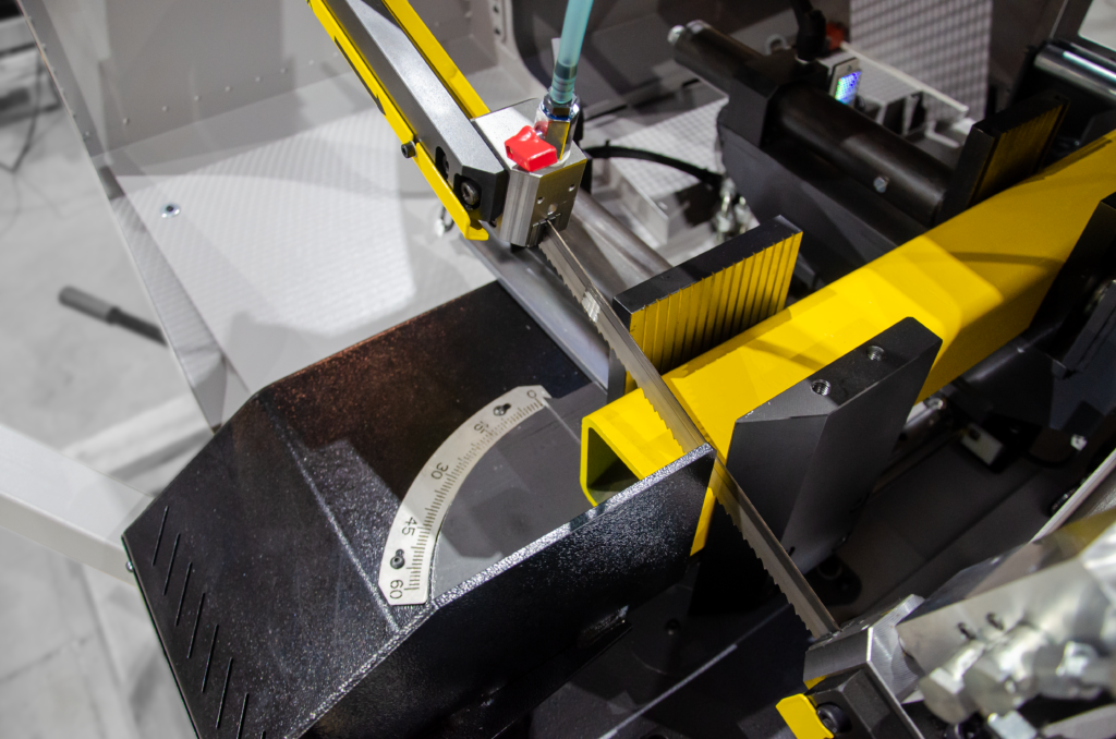 W porównaniu z konkurencją piła ta oferuje precyzję cięcia, gwarantowaną przez profesjonalne prowadzenie taśmy piły w łożyskach oraz w twardych prowadnicach węglikowych. Węglik jest kruchy ale w przecinarkach taśmowych wykorzystuje się jego drugą właściwość a mianowicie jest odporny na ścieranie co zapewnia jego długowieczną pracę w prowadzeniu brzeszczotu piły taśmowej. Dodatkowo maszyna wyposażona jest w System ADFR (z ang. Automatic Down-Feed Regulation) to automatyczny system regulacji prędkości opuszczania ramienia przecinarki taśmowej.