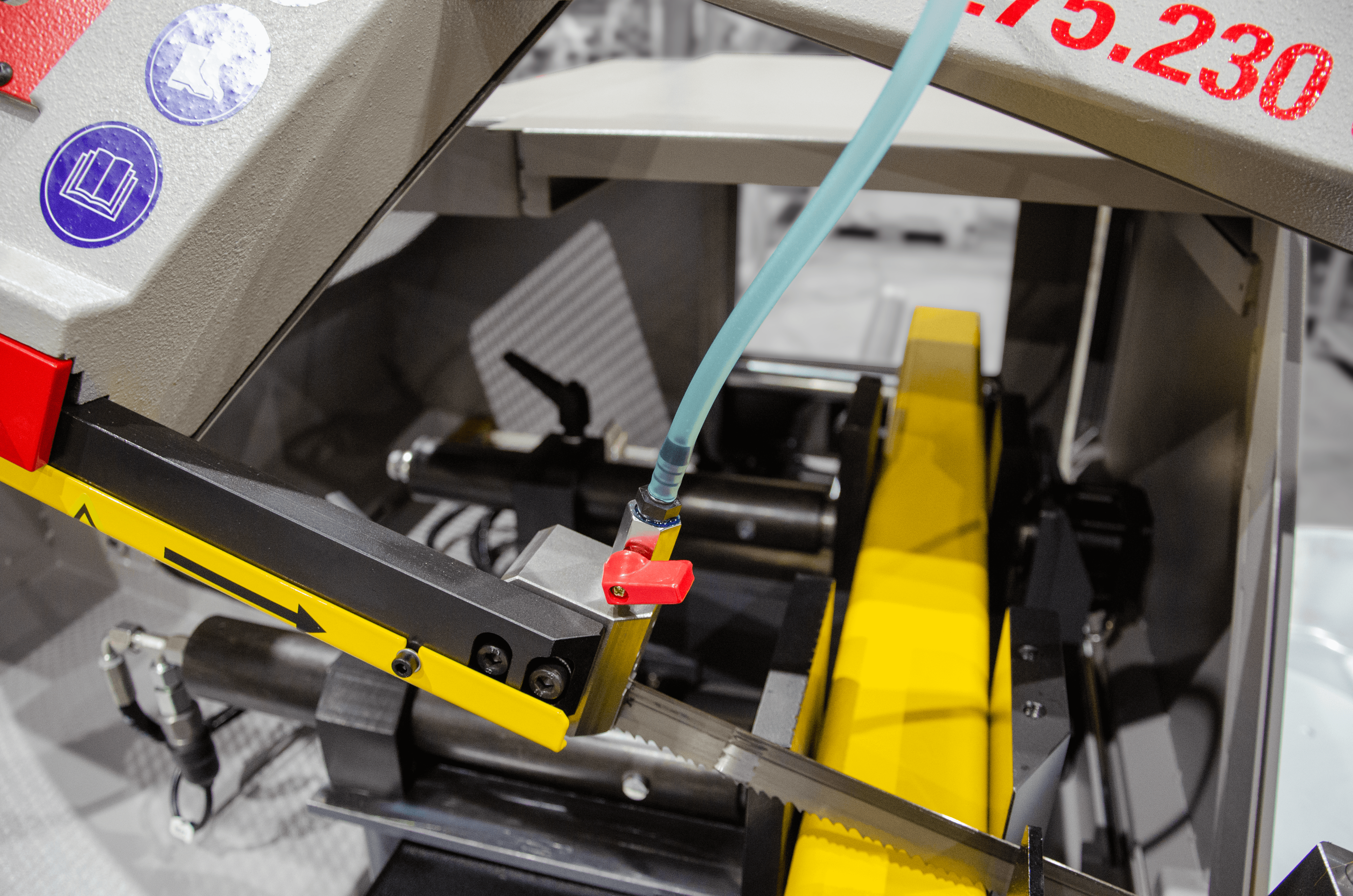 Dodatkowy układ chłodzenia doskonale sprawdzi się przy cięciu materiałów o dużej średnicy, w przypadku, kiedy rozstaw kostek prowadzących jest za szeroki. Ustawienie rozprowadzania płynu chłodzącego jest niezwykle proste. Dodatkowym plusem jest możliwość regulacji. Piła taśmowa jest nie tylko smarowana, ale również chłodzona.