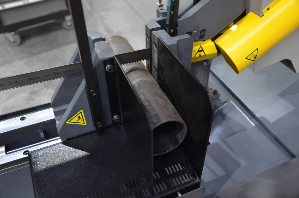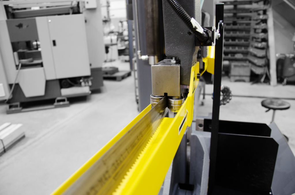 W porównaniu z konkurencją piła ta oferuje precyzję cięcia, gwarantowaną przez profesjonalne prowadzenie taśmy piły w łożyskach oraz w twardych prowadnicach węglikowych. Węglik jest kruchy ale w przecinarkach taśmowych wykorzystuje się jego drugą właściwość a mianowicie jest odporny na ścieranie co zapewnia jego długowieczną pracę w prowadzeniu brzeszczotu piły taśmowej. Dodatkowo maszyna wyposażona jest w System ADFR (z ang. Automatic Down-Feed Regulation) to automatyczny system regulacji prędkości opuszczania ramienia przecinarki taśmowej.