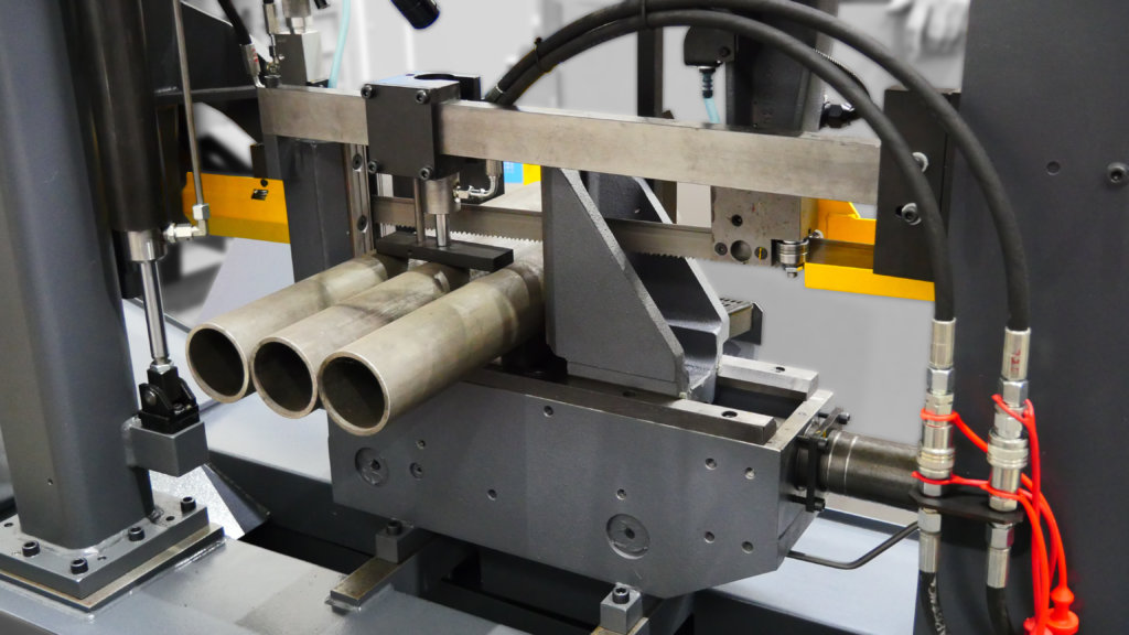 W przypadku cięcia elementów cienkościennych do przecinarki Proline można dodatkowo zamontować również regulację zacisku imadeł, która zapobiega zgnieceniu lub odkształceniu ciętych materiałów np. rur czy profili.
