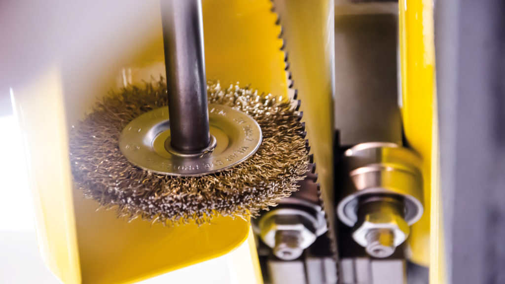 Pilarka PROLINE 520.450H jest wyposażona w szczotkę czyszczącą piłę taśmowa z wiórów. Gwarantuje to dłuższą żywotność taśmy i higienę cięcia na przecinarce.
