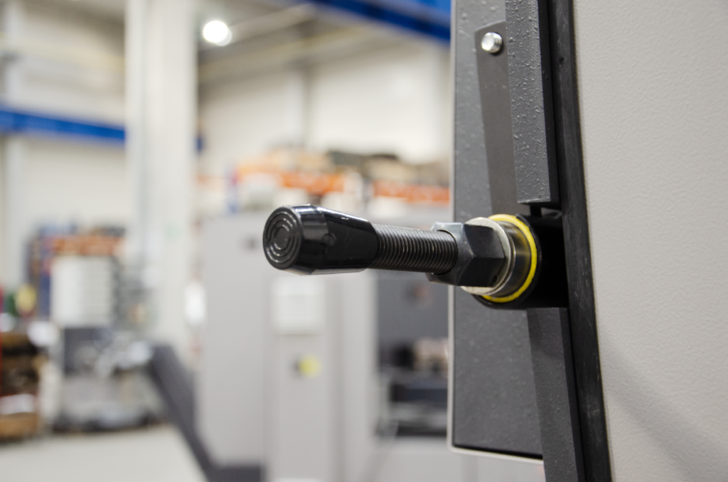Aby prawidłowo ciąć na przecinarce piła taśmowa powinna być dobrze napięta. Przecinarka Proline 520.450H jak wszystkie maszyny marki Bomar, wyposażona jest w śrubę (gwiazdę) która znajduje się przy kole napinającym która to umożliwia.
