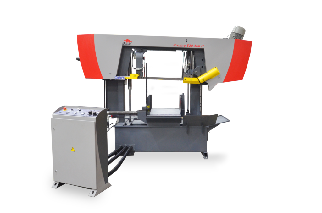 Przecinarka taśmowa PROLINE 520.450H to dwukolumnowa piła półautomatyczna do seryjnych cięć pod kątem prostym. Przeznaczona jest dla zakładów, które oczekują wysokiej jakości cięć. Dwukolumnowa konstrukcja zapewnia doskonałą precyzję przy cięciu zwłaszcza pełnych materiałów. Ramię piły prowadzone jest przez dwie solidne kolumny i ułożone na prowadnicach liniowych z jednej strony oraz na prowadnicach pomocniczych z drugiej strony. Dzięki hydraulicznemu sterowaniu przyspieszony zostaje proces cięcia oraz zwiększona precyzja obróbki materiałów.