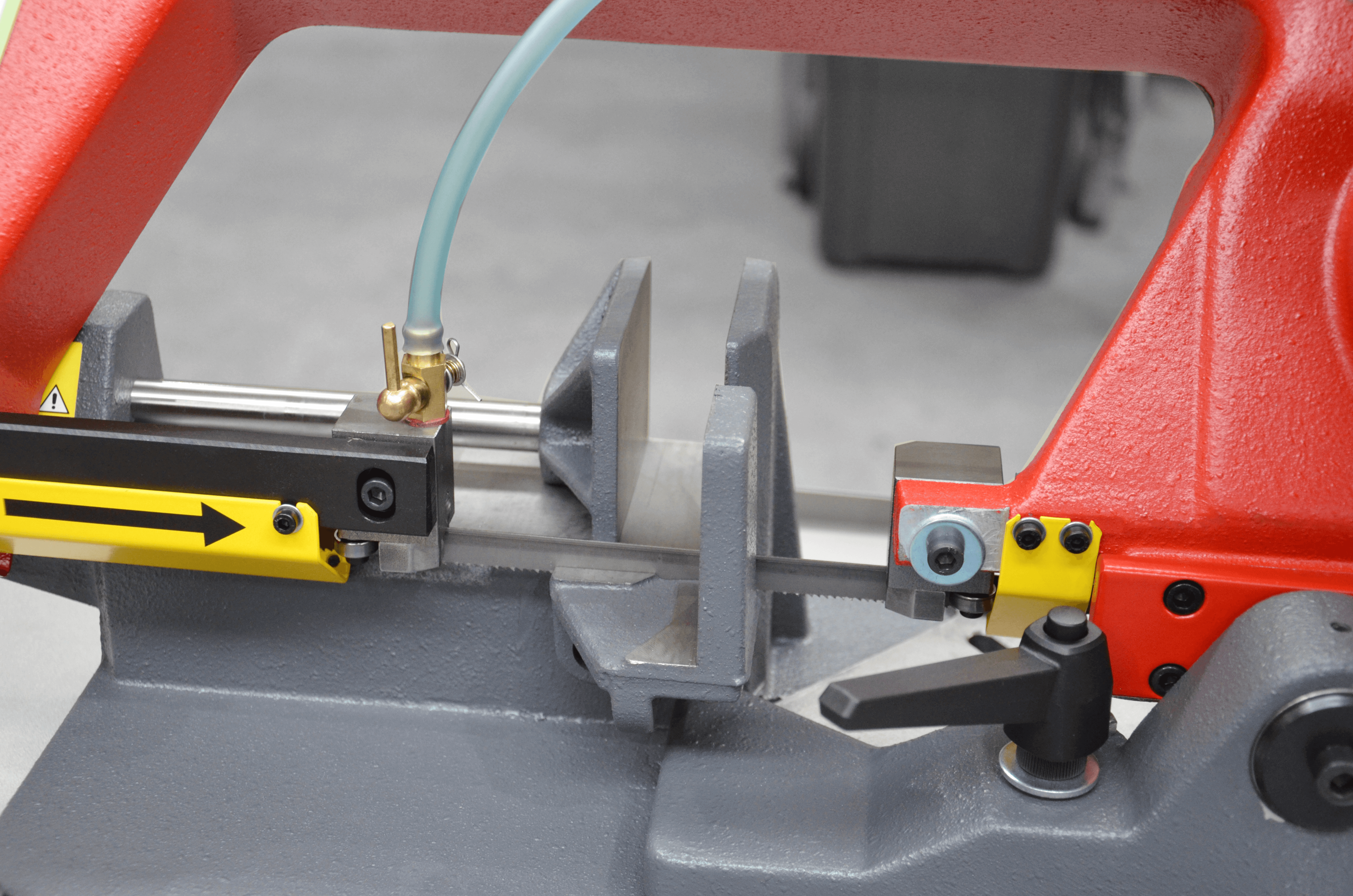 Precyzyjne cięcie stali – w porównaniu z konkurencją piła ta oferuje precyzję cięcia, gwarantowaną przez profesjonalne prowadzenie taśmy piły w łożyskach oraz w twardych prowadnicach węglikowych.