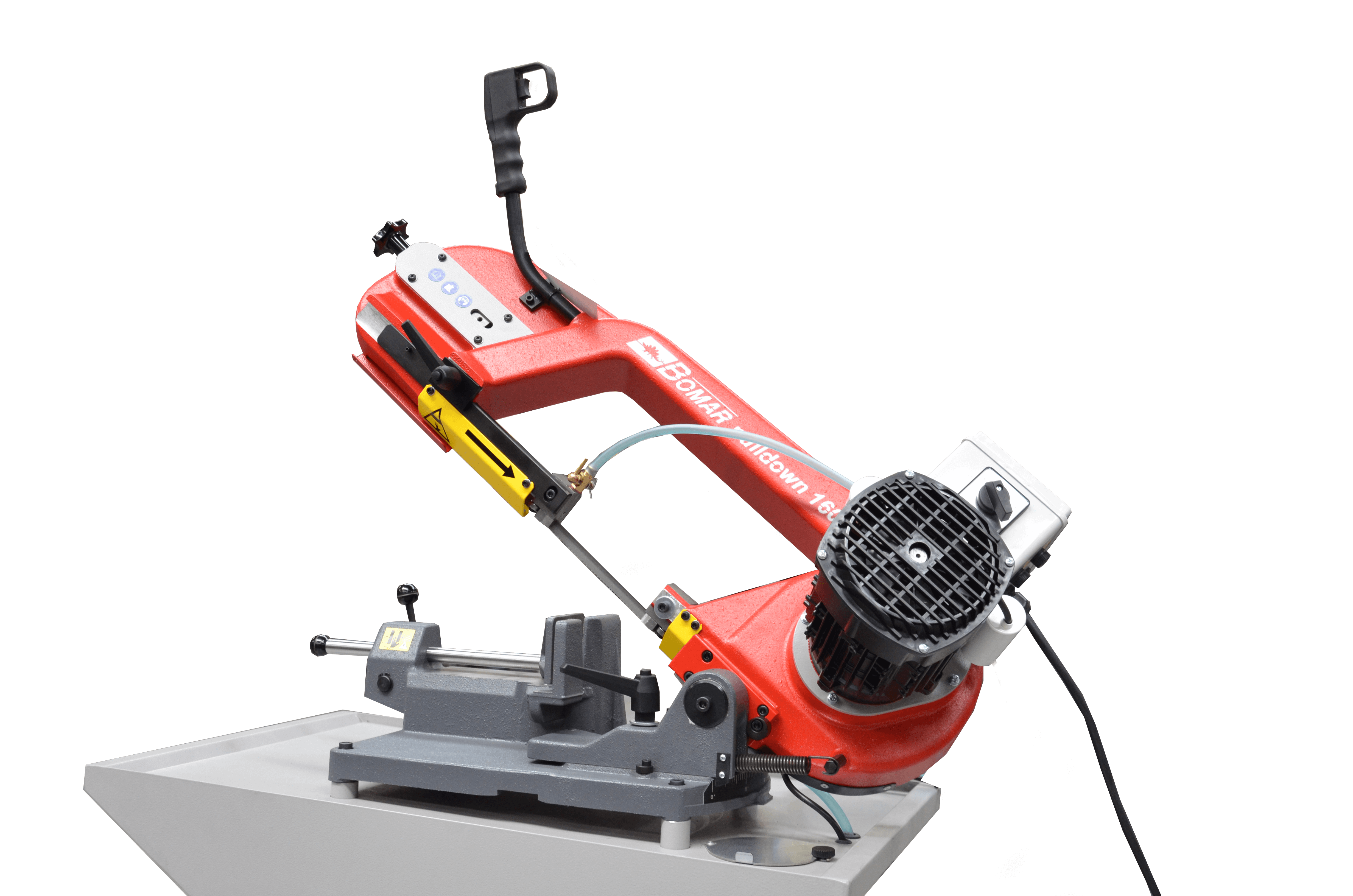 Piła wyposażona jest w wysokowydajny silnik dwubiegowy. Jednofazowy silnik przyczynia się do wydłużenia żywotności taśmy piły, szczególnie w przypadku cięcia materiałów ze stali nierdzewnej. Wydajny silnik zapewnia stabilne i mocne cięcie, a układ napędowy taśmy jest zaprojektowany w sposób minimalizujący ryzyko jej zerwania. Przecinarka Pulldown 160.120G posiada prosty w obsłudze panel sterowania, który umożliwia łatwą regulację parametrów cięcia oraz monitorowanie pracy maszyny.