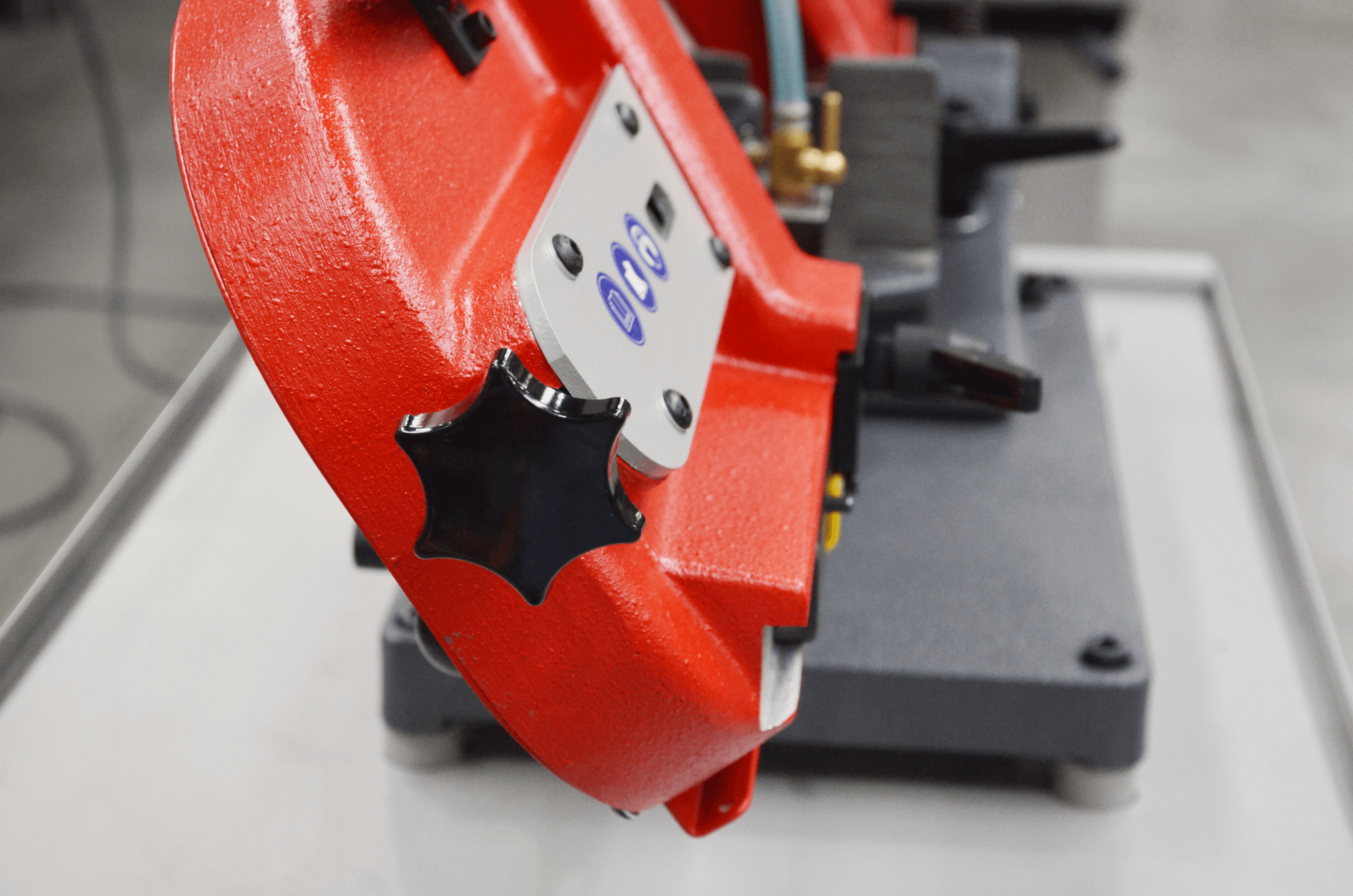 Do przecinarki można dodatkowo dokupić podstawę która wraz z układem chłodzenia oraz przecinarką stanowią stacjonarne stanowisko pracy wygodnym i kompleksowym.