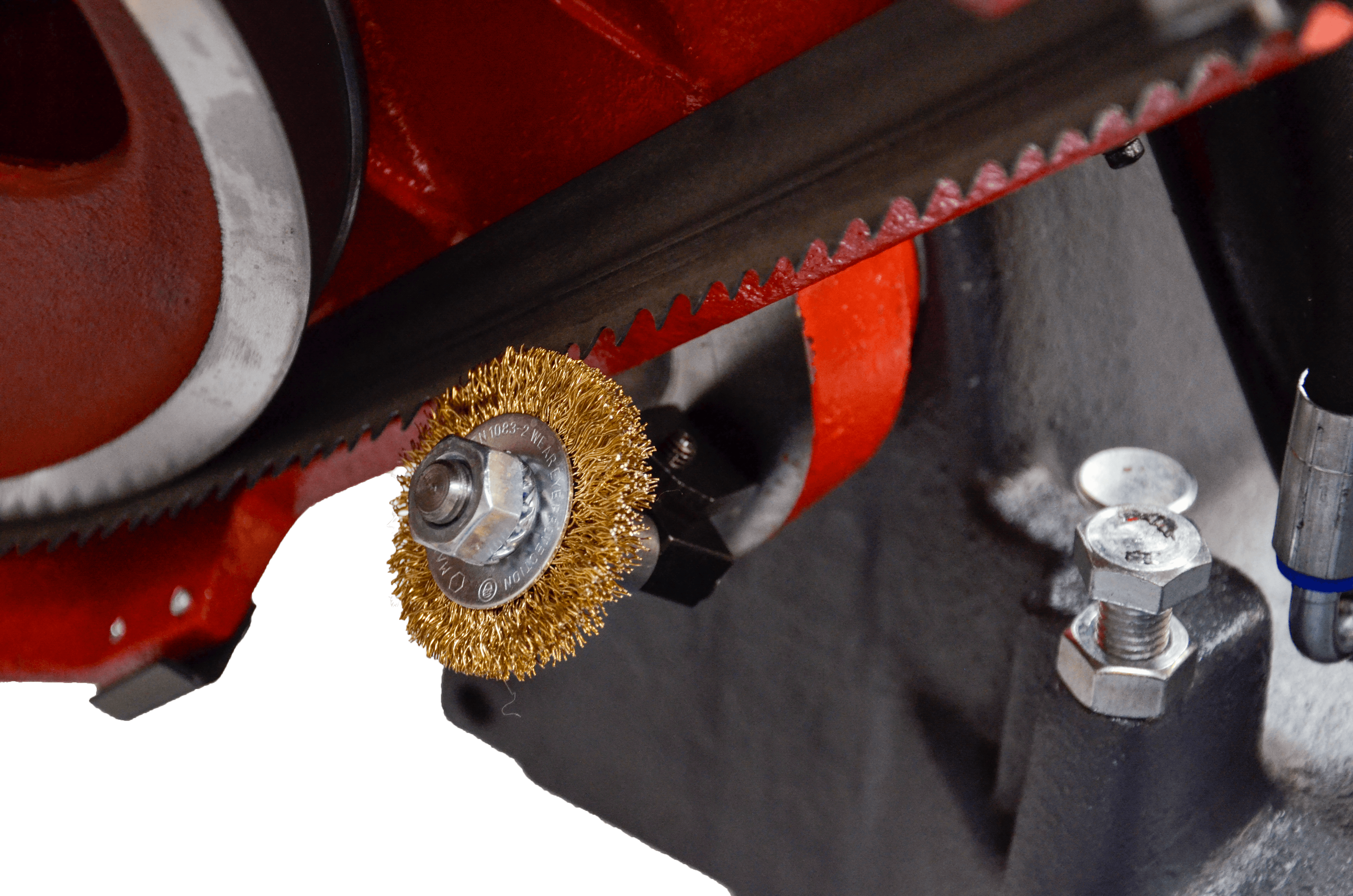 Pilarka Pulldown 160.120g jest wyposażona w szczotkę czyszczącą piłę taśmowa z wiórów. Gwarantuje to dłuższą żywotność taśmy i higienę cięcia na przecinarce.