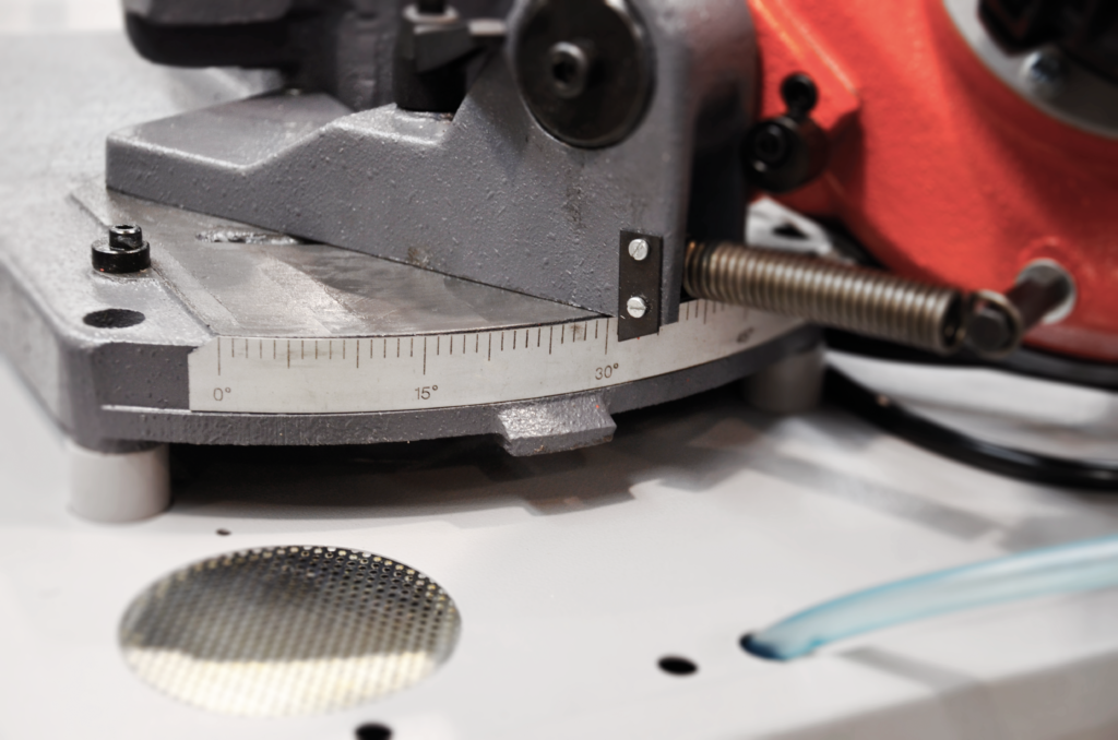Piła Pulldown 160.120G jest zdolna do cięcia materiałów o średnicy do 120mm, co czyni ją odpowiednią do wielu zastosowań w małych i średnich przedsiębiorstwach. Przecinarka jest wyposażona w obrotowe ramię, co pozwala na cięcie pod kątem do 60° a czytelna skala umożliwia precyzyjną regulację kąta cięcia.