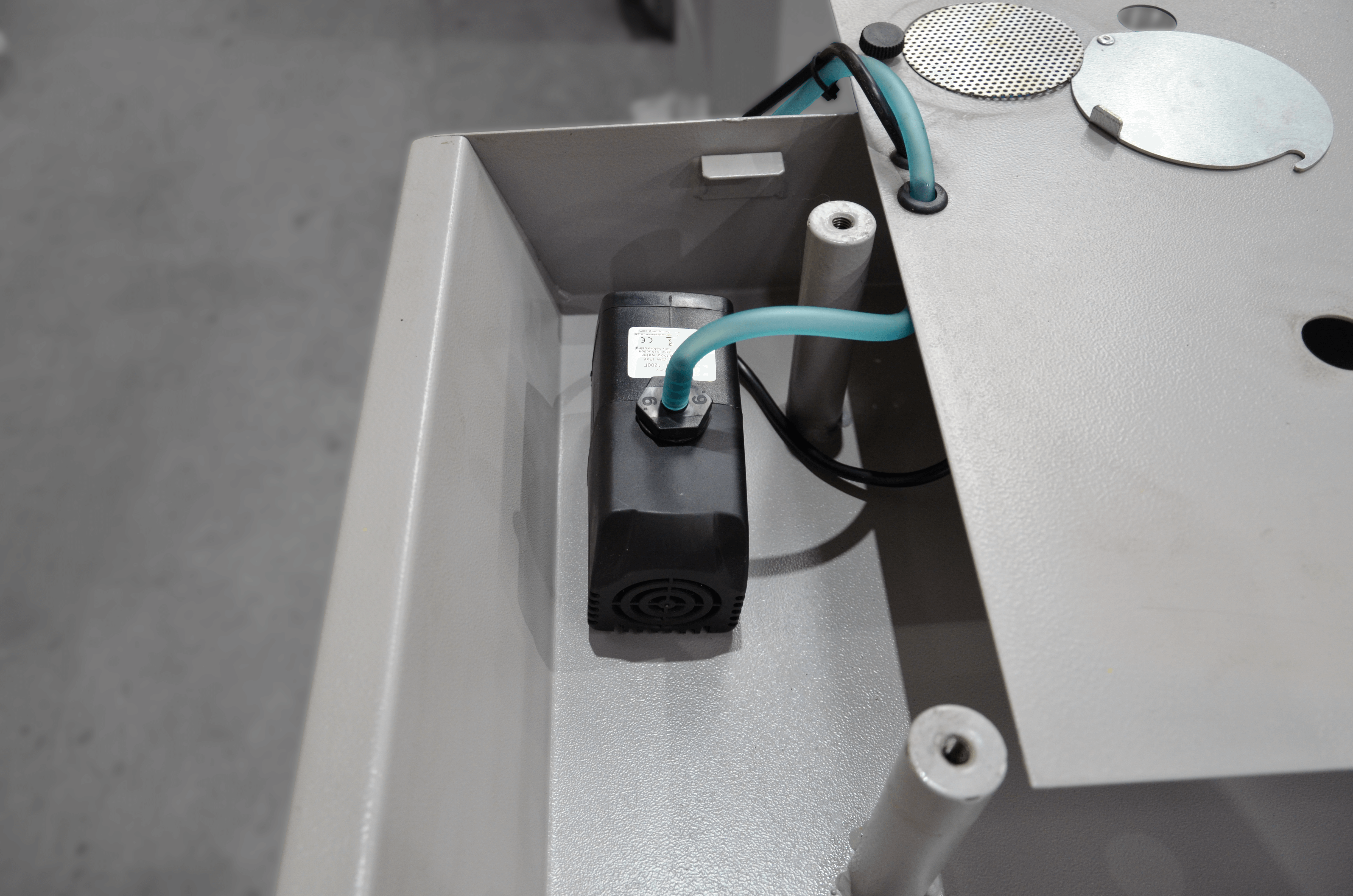 Do przecinarki można dodatkowo dokupić wannę z układem chłodzenia . Chłodzenie jest bardzo ważne podczas cięcia gdyż zapobiega nagrzewaniu się piły taśmowej a tym samym zwiększa ich żywotność.