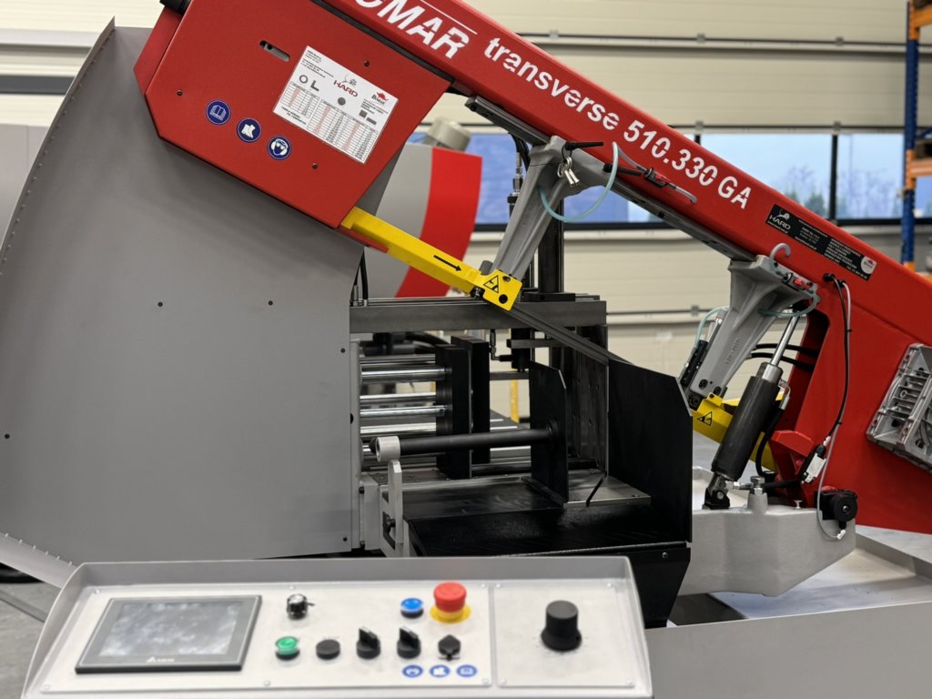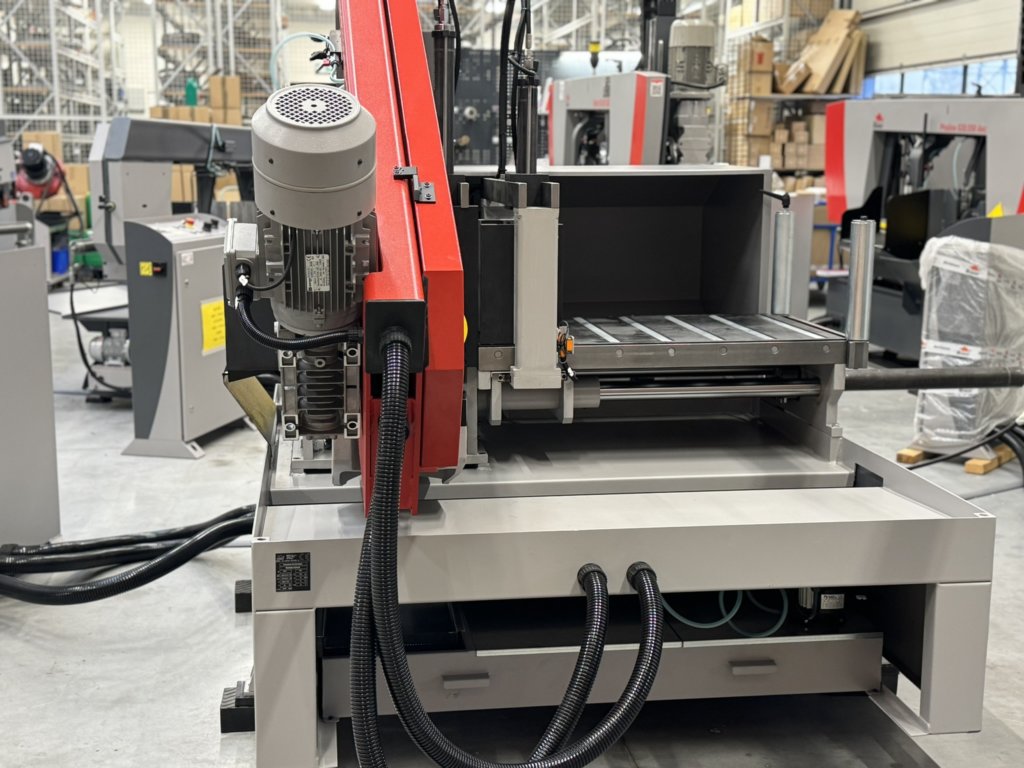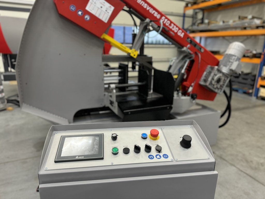 Automatyczna piła taśmowa ze sterowaniem NC model Transverse 610.440GANC. Największą zaletą tej maszyny jest możliwość zaprogramowania różnej ilości sztuk obrabianego materiału, o różnych długościach, bez dalszej kontroli maszyny. Przecinarka ta szczególnie nadaje się do cięcia profili i materiałów pełnych o mniejszych przekrojach z dokładnością jednego posuwu 0,2 mm. Ta automatyczna piła taśmowa to niezwykle wszechstronna maszyna, przeznaczona do produkcji małoseryjnej. Transverse 610.440GANC to wydajna piła taśmowa zaprojektowana z myślą o pracach warsztatowych oraz produkcyjnych, wymagających precyzyjnego cięcia metalu. Maszyna łączy solidną konstrukcję z możliwością automatyzacji procesu cięcia, co sprawia, że nadaje się do zadań o wysokim stopniu powtarzalności.