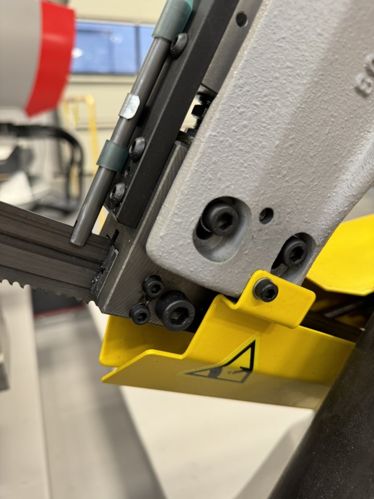 Aby prawidłowo ciąć na przecinarce piła taśmowa powinna być dobrze napięta. Przecinarka Transverse 610.440GANC jak wszystkie maszyny marki Bomar, wyposażona jest w śrubę (gwiazdę) która znajduje się przy kole napinającym która to umożliwia.