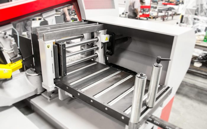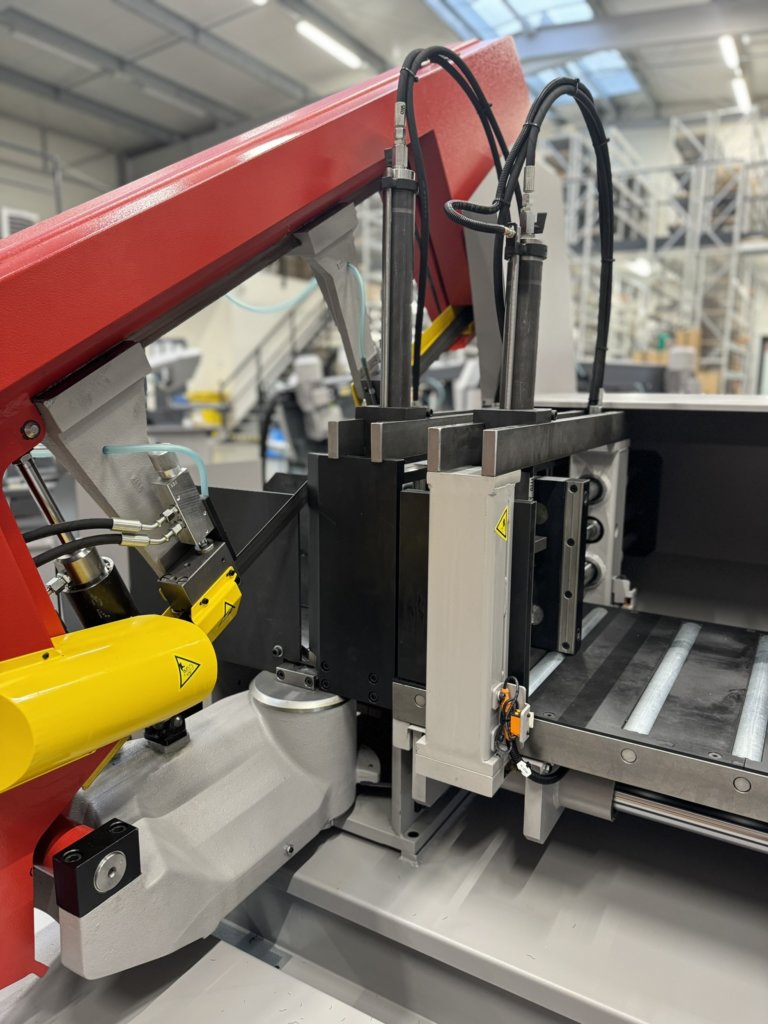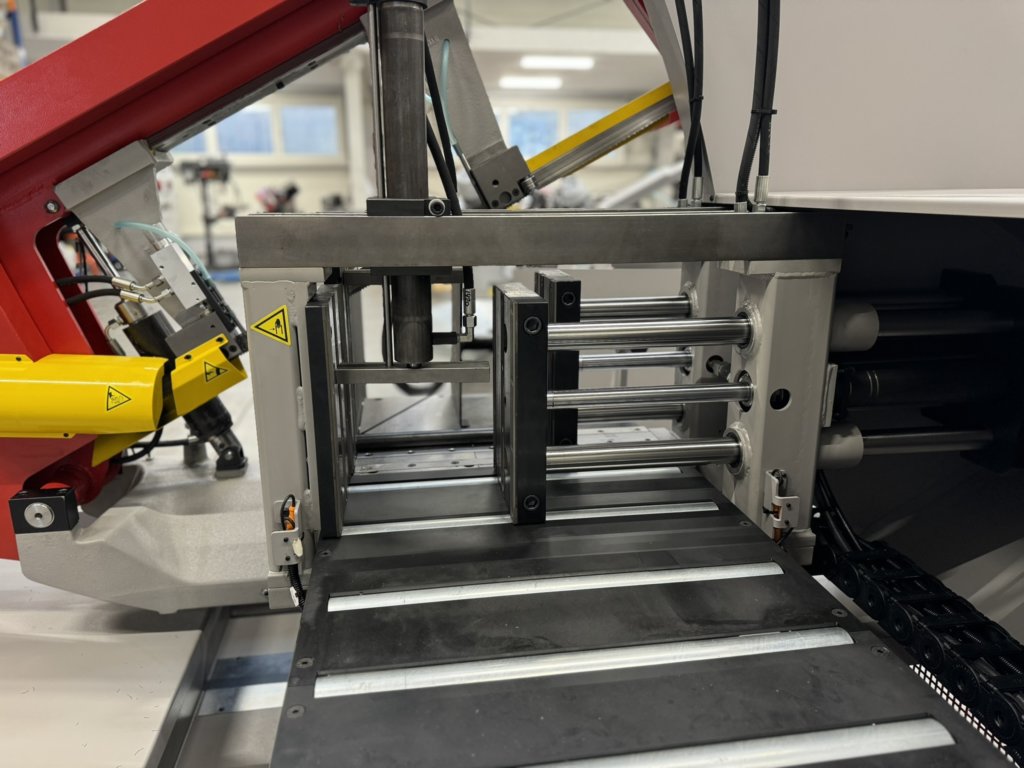 Przecinarka taśmowa Transverse 610.440 GANC wyposażona jest w dwa imadła. Imadło główne i imadło podające materiał do cięcia. Mocne imadło i solidne szczęki zapewniają stabilny zacisk materiału co przekłada się na dokładność cięcia i bezpieczeństwo operatora. Największą zaletą tej maszyny jest możliwość zaprogramowania różnej ilości sztuk obrabianego materiału, o różnych długościach, bez dalszej kontroli maszyny. Maksymalna długość pojedynczego posuwu to 500 mm. Maszyna ta szczególnie nadaje się do cięcia profili i materiałów litych o mniejszych przekrojach z dokładnością jednego posuwu 0,2 mm.