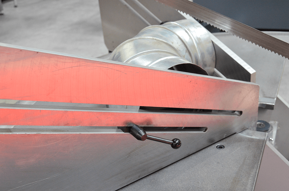 Aby prawidłowo ciąć na przecinarce piła taśmowa powinna być dobrze napięta. Przecinarka Workline 610.450DGH jak wszystkie maszyny marki Bomar, wyposażona jest w śrubę (gwiazdę) która znajduje się przy kole napinającym która to umożliwia.