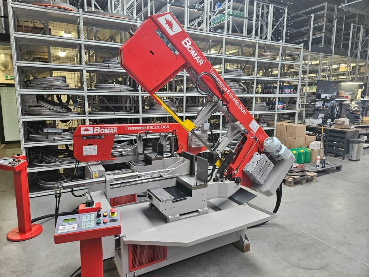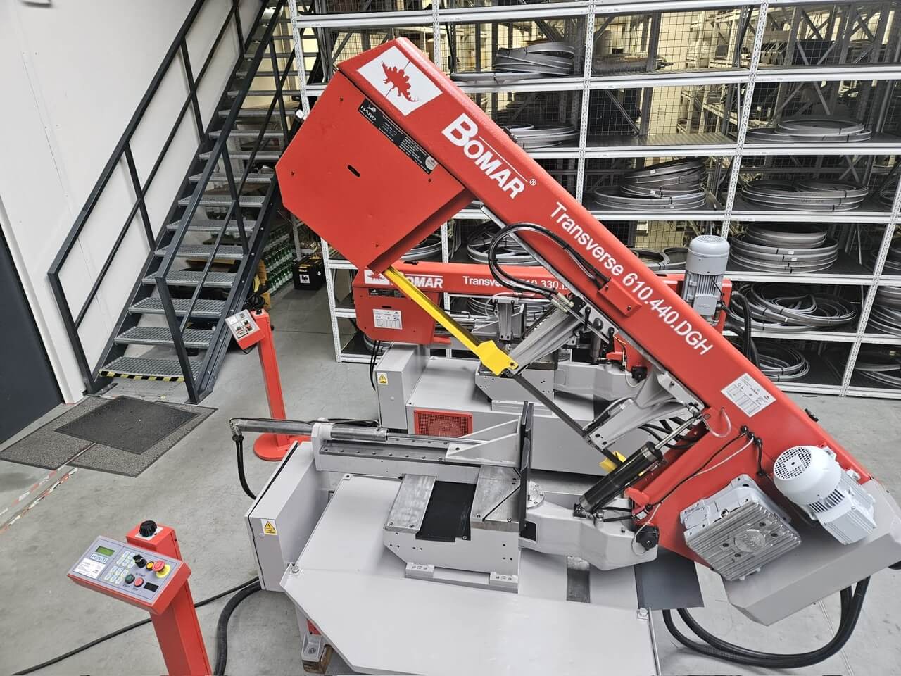 Niezawodny, wydajny, obustronnie obrotowy, hydrauliczny półautomat do cięcia materiałów o średnicy do 440 mm. Przegubowe, solidne, spawane ramię wykorzystuje precyzyjną, trójstronną prowadnicę z twardego metalu dla taśmy 32 mm i jest osadzone we wstępnie obciążonych łożyskach stożkowych; te dwie cechy są ważne dla jakości i precyzji cięcia.